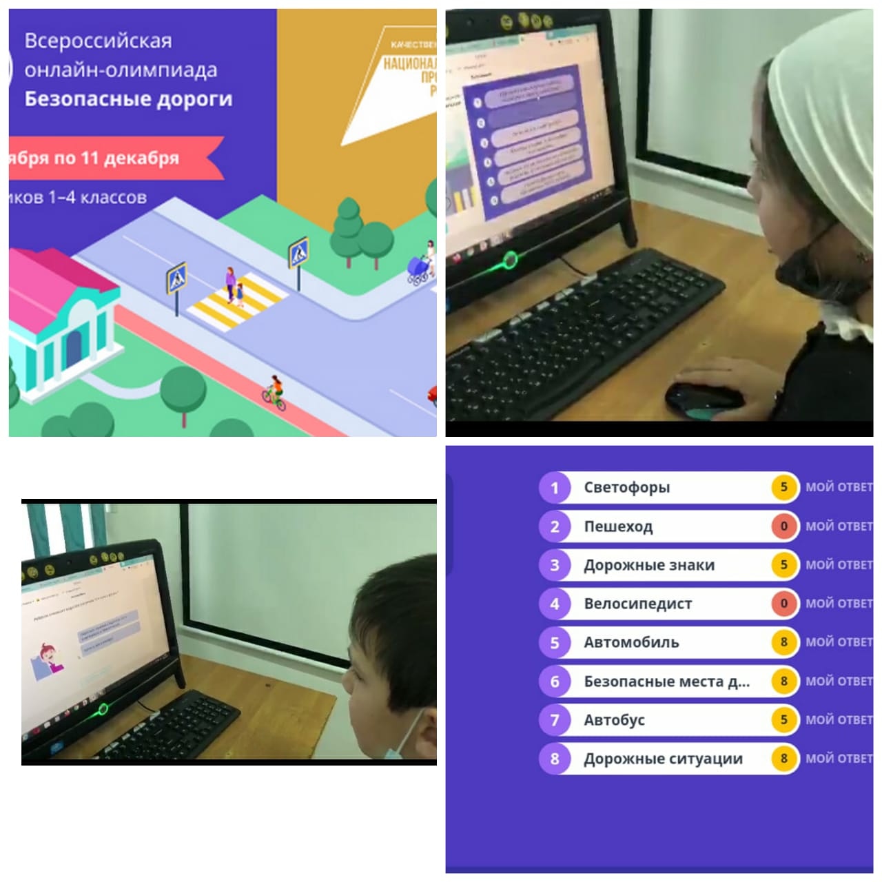 30.11.2020В понедельник, 30 ноября, на образовательной платформе uchi.ru началась Всероссийская онлайн-олимпиада «Безопасные дороги», где школьникам 1-4 классов предложено проверить свои знания по безопасности поведения на дорогах.Целью Олимпиады является повышение осведомленности детей в вопросах дорожного движения.На задания даётся 60 минут. Выполнение заданий позволит нашим учащимся закрепить знания ПДД. Желаем удачи!!!