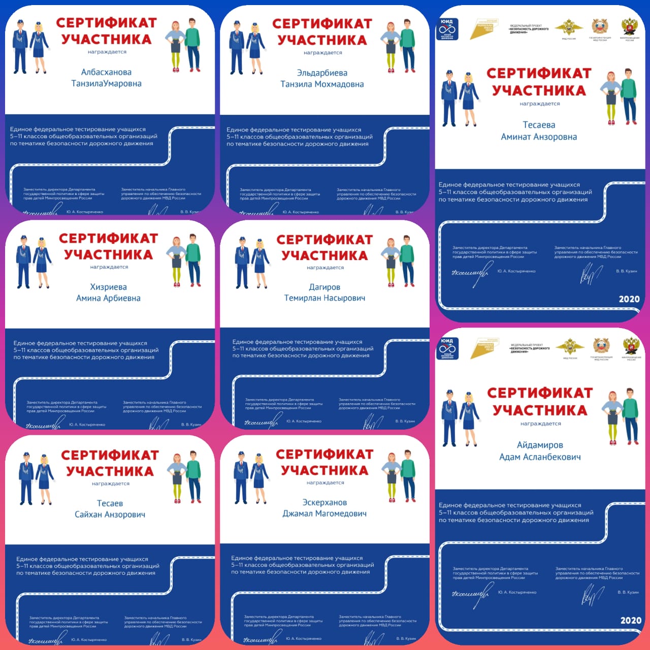 С 14 по 16 декабря 2020 года учащиеся 5-11 классов приняли активное участие в онлайн-тестировании "Знатоки ПДД" . 21 .12.2020 подведены итоги тестирования, все участники получили сертификаты .