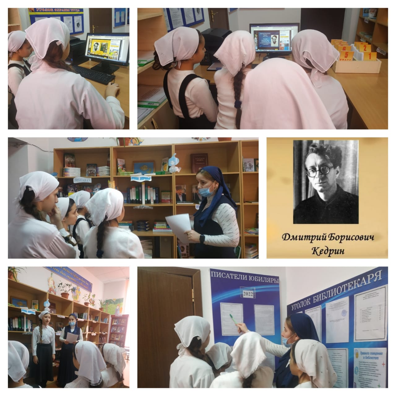 03.02.202203.02.2022 года в нашей школе библиотекарем Эдаевой Иман Абдулвахидовной в 5-х классах была проведена беседа на тему: " 4 февраля - 115 лет со дня рождения Д.Б. Кедрина".Цель беседы: познакомить учащихся с творчеством Д.Б. Кедрина.