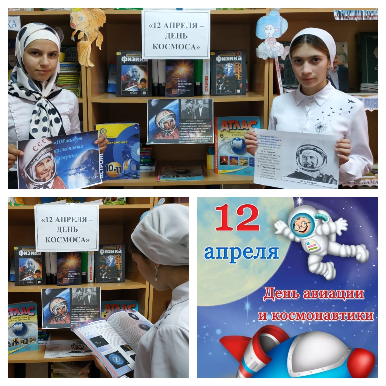 14.04.2022В рамках празднования Дня Космонавтики в нашей школе библиотекарем Эдаевой Иман Абдулвахидовной была организована книжно-иллюстративная выставка на тему: "12 апреля - День космоса".Цель выставки: познакомить учащихся с историей освоения космоса и с первыми космонавтами; прививать интерес к изучению космоса и истории космонавтики; воспитывать чувство патриотизма и гражданственности.