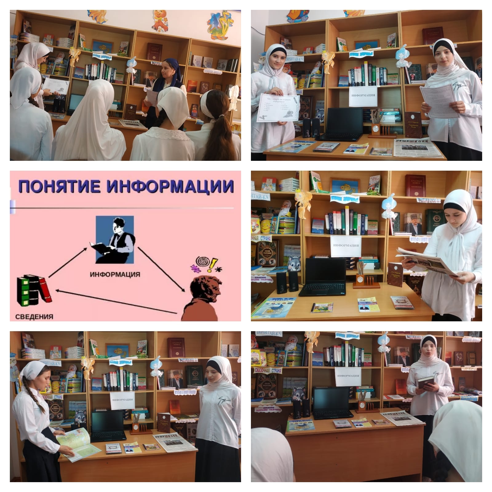 18.04.2022Библиотекарем нашей школы Эдаевой Иман Абдулвахидовной в 9 классе был проведён библиотечный урок на тему: " Понятие"информация", её виды и свойства".Цель урока: сформировать у учащихся представление о месте и роли информации в жизни человека, информационных ресурсах общества, их составе и способах преобразования.