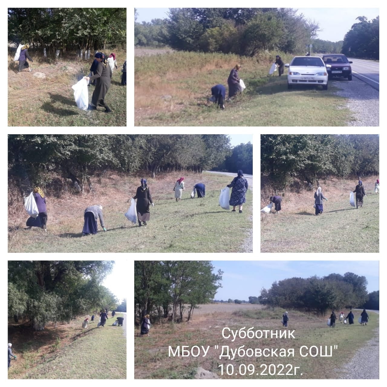 10.09.202210.09.2022 года в субботнике приняли участие следующие работники МБОУ "Дубовская СОШ" - 1.Талхигов Зубайру, 2.Боршигова Айна, 3.Селиванов Алексей, 4.Агаева Манза,5.Агаева Джамиля, 6.Дибирова Совбика,7. Гетиева Эльза,8. Эльдарбиева Куржан