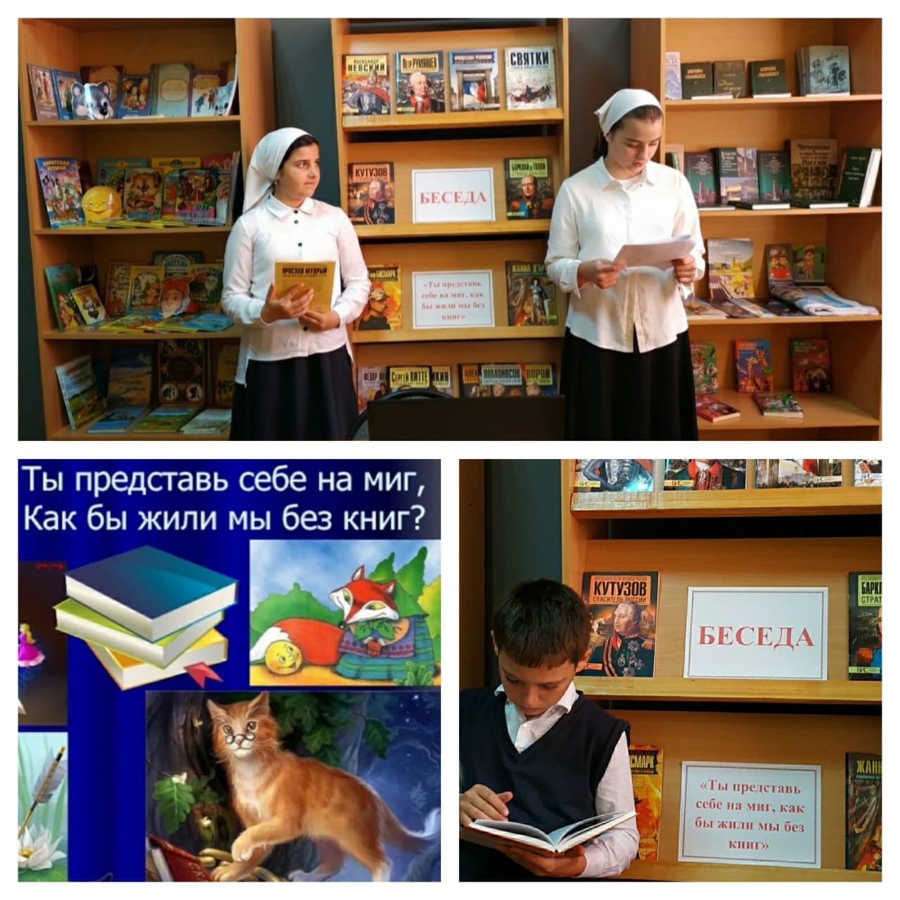 Библиотекарем нашей школы Эдаевой Иман Абдулвахидовной была проведена беседа:"Ты представь себе на миг, как бы жили мы без книг?"
