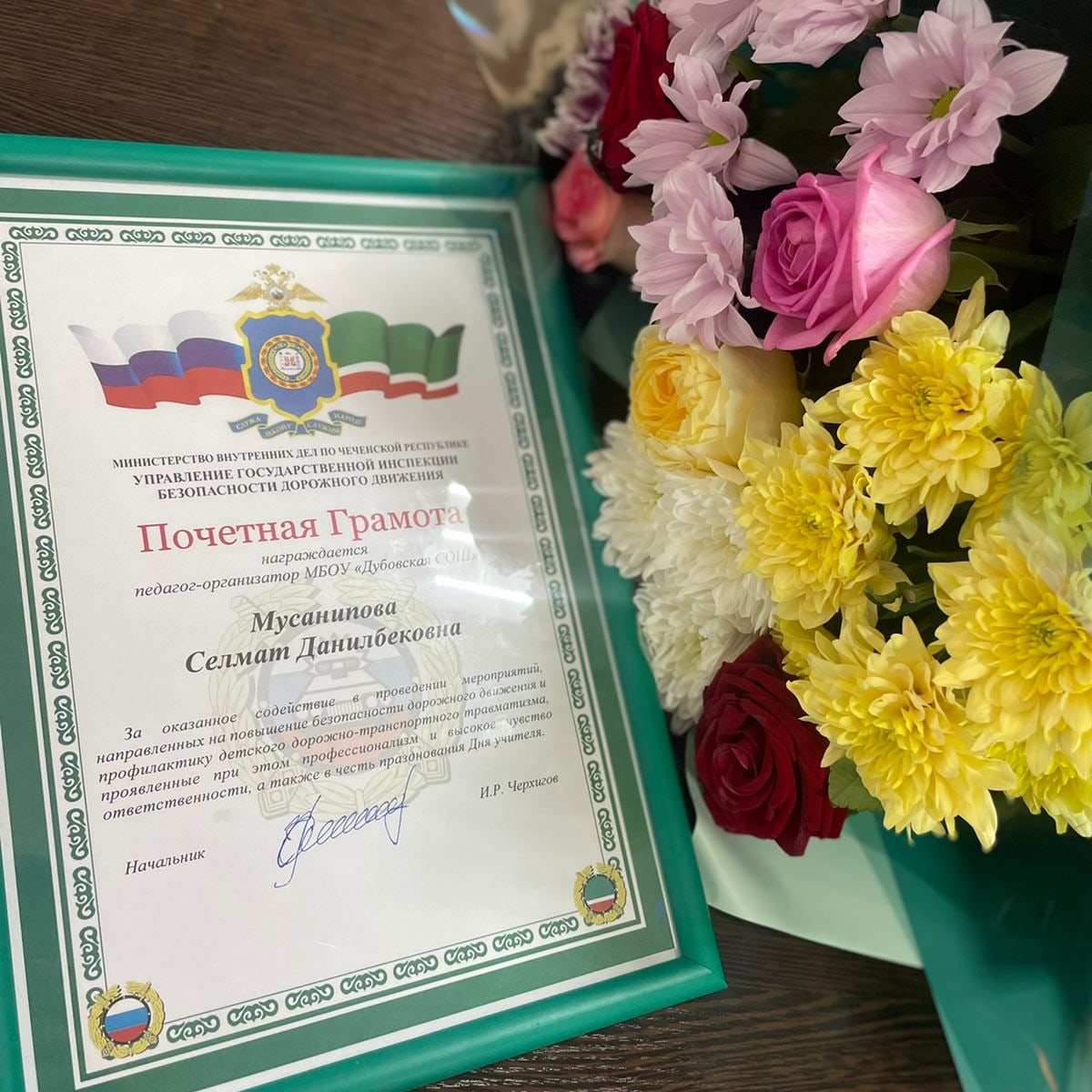 06.10.2022Добрый день, дорогие друзья!Спешим поделиться с вами приятной новостью. Организатор ДДТ Мусанипова Селмат Данилбековна награждена почетной грамотой УГИБДД МВД по ЧР за оказанное содействие в проведении мероприятий, направленных на повышение безопасности дорожного движения и профилактику детского дорожно- транспортного травматизма.