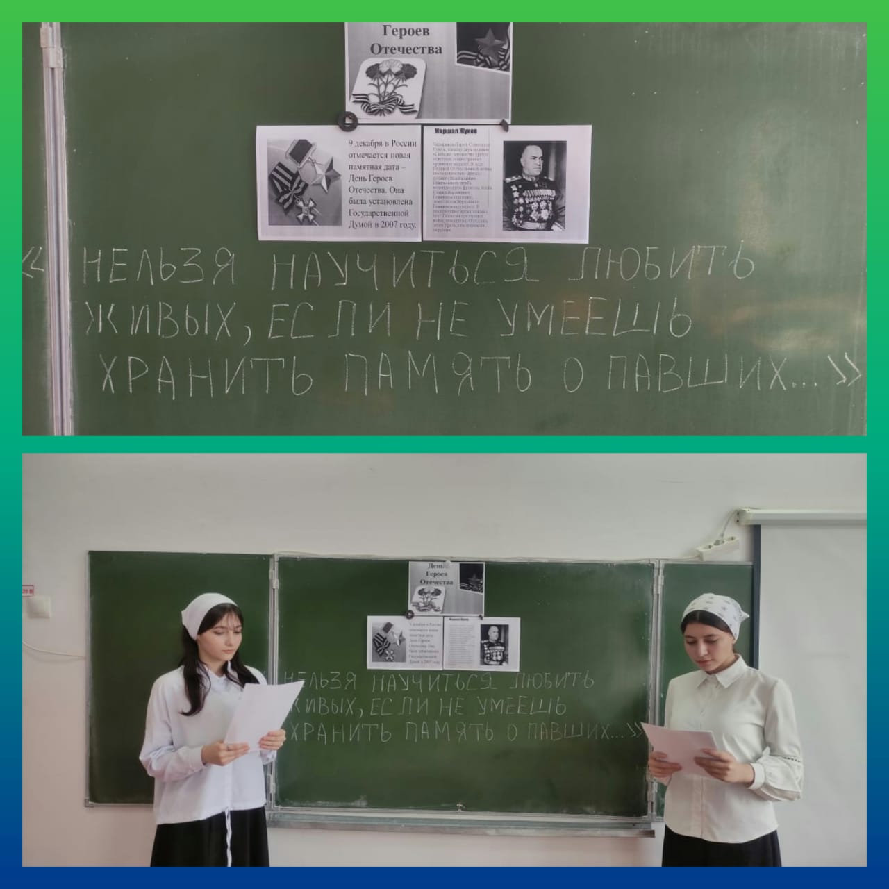 22.12.2022Кл.час,посвященный Дню героев Отечества в 11 классе . Кл.рук.Булуева З.М. Цель: способствовать формированию активной гражданской позиции, общечеловеческих ценностей; чувства гордости за славные подвиги лучших граждан во имя Отечества; воспитание патриотизма, гражданственности, чувства гордости и уважения к историческому прошлому Родины.