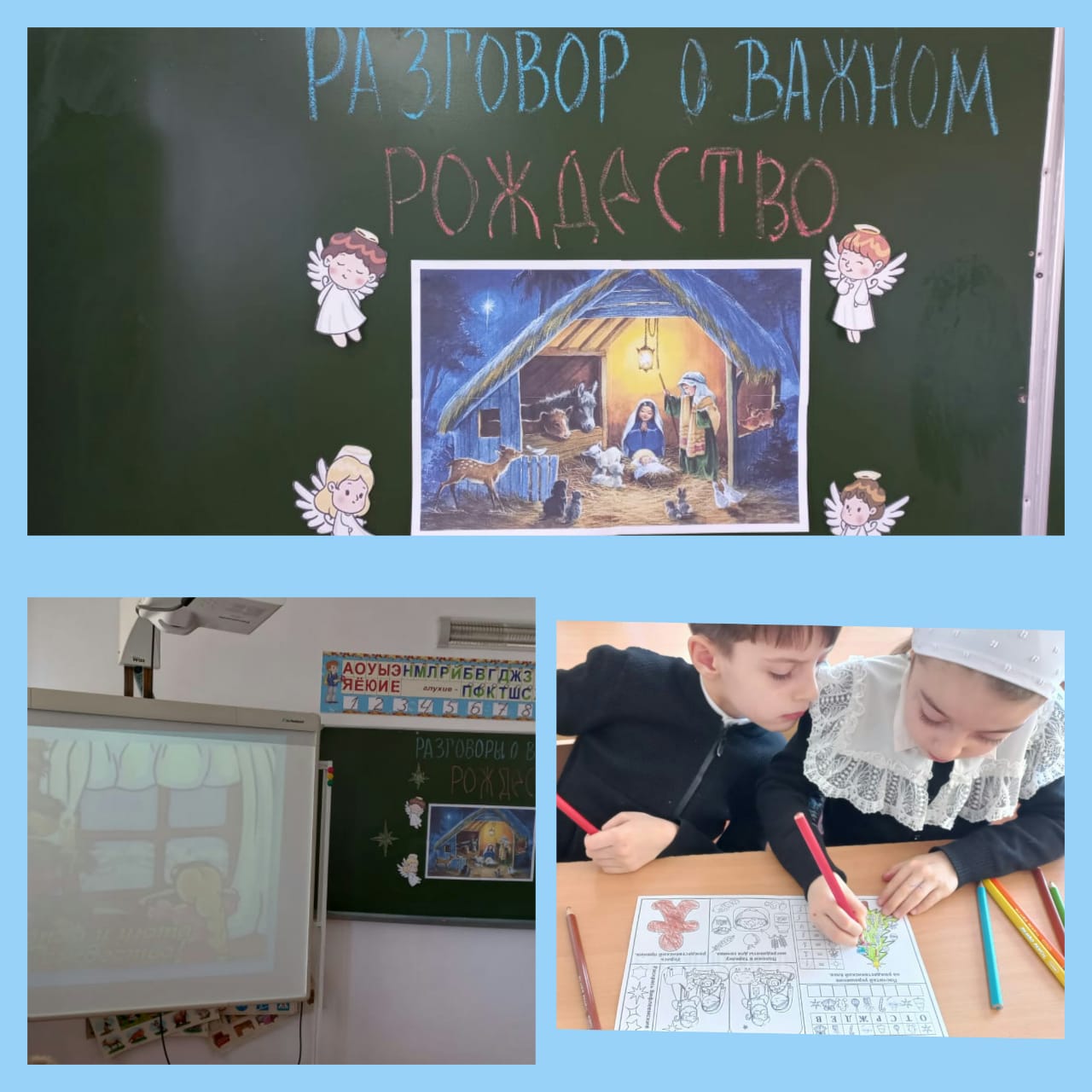 Внеурочное занятие "Разговоры о важном" по теме "Рождество " в 1 б классе ,кл.рук.Панюшкина Светлана Васильевна .