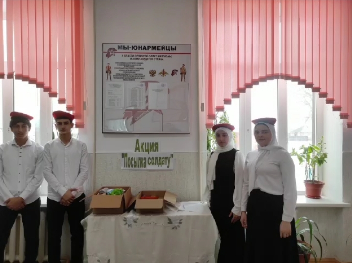 Сегодня активисты Юнармии провели акцию "Посылка солдату" среди учащихся первой смены.