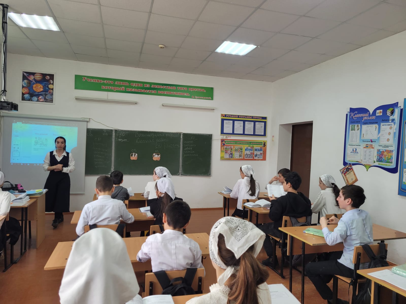 21.02.2023В соответствии с графиком проведения открытых уроков в МБОУ "Дубовская СОШ" учителями русского языка и литературы Товсултановой Э. С., Хажалиевой Х. З. и Сулеймановой С. А. были проведены открытые уроки. Педагоги показали знания методики ведения современного урока, разнообразные приёмы и методы, позволившие достичь целей и задач уроков.