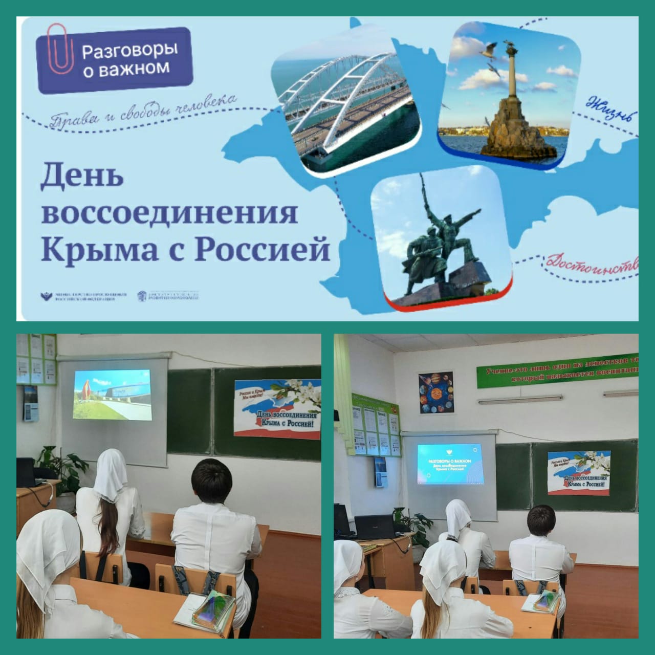 Внеурочное занятие "Разговоры о важном " на тему "День воссоединения Крыма с Россией" в 6 а классе.