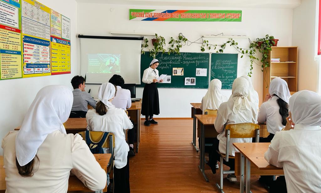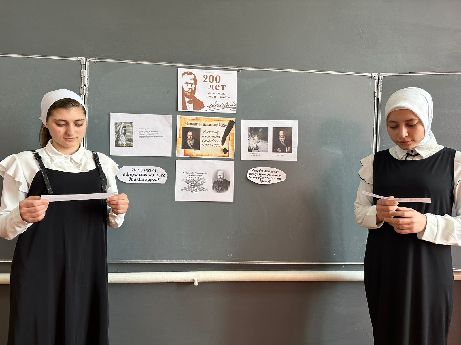В МБОУ «Дубовская СОШ» 11 и 12 апреля были проведены Всероссийские уроки литературы, посвящённые 200-летию со дня рождения А.Н. Островского, которые носили познавательный характер. В 8,10-11 классах провела уроки Товсултанова Э.С. В 9-х классах - молодой учитель Эльгериева Л.В.