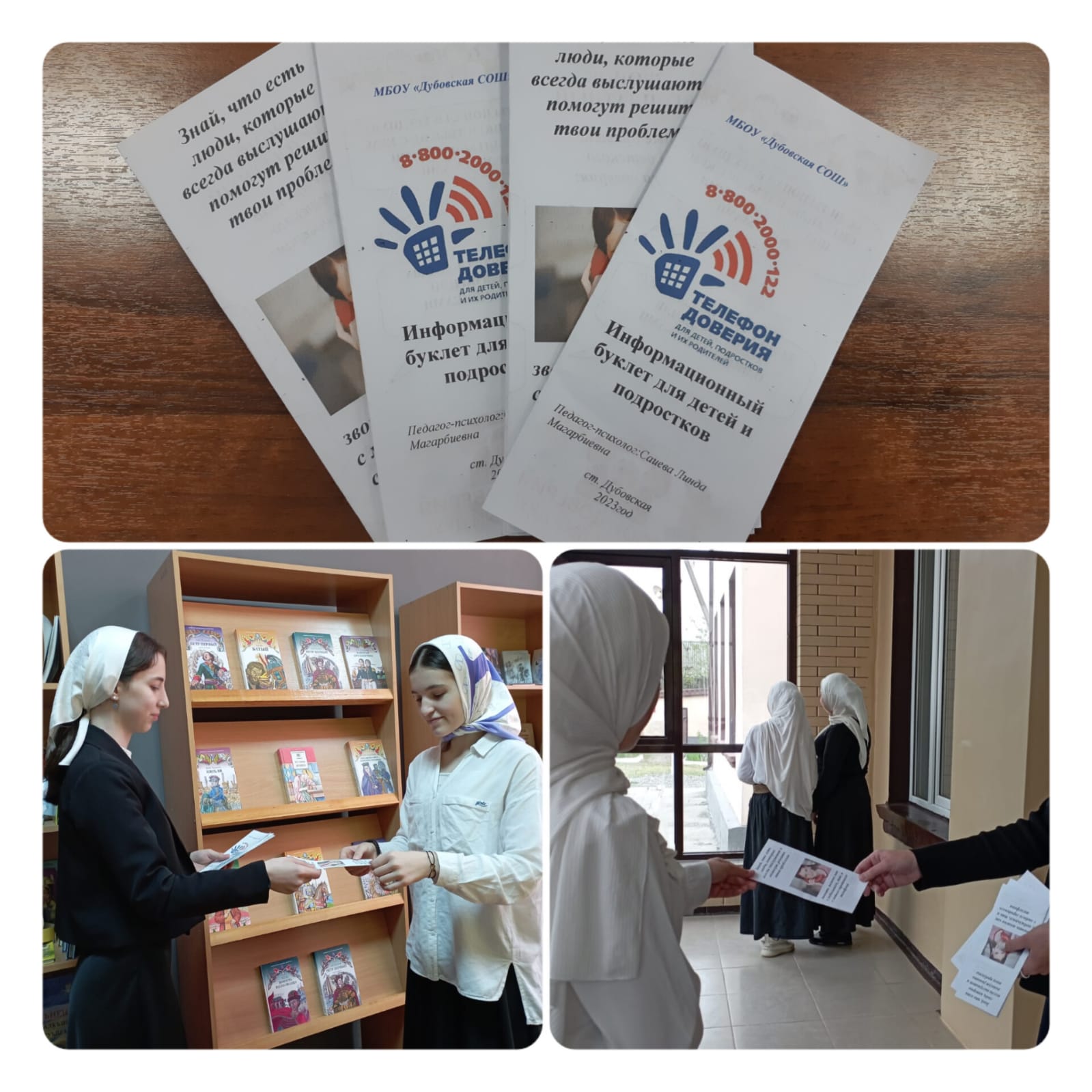 19.04.23 В рамках недели психологии педагог-психолог Саиева Линда Магарбиевна раздала буклеты с телефоном доверия и памяткой его использования учащимся школы.