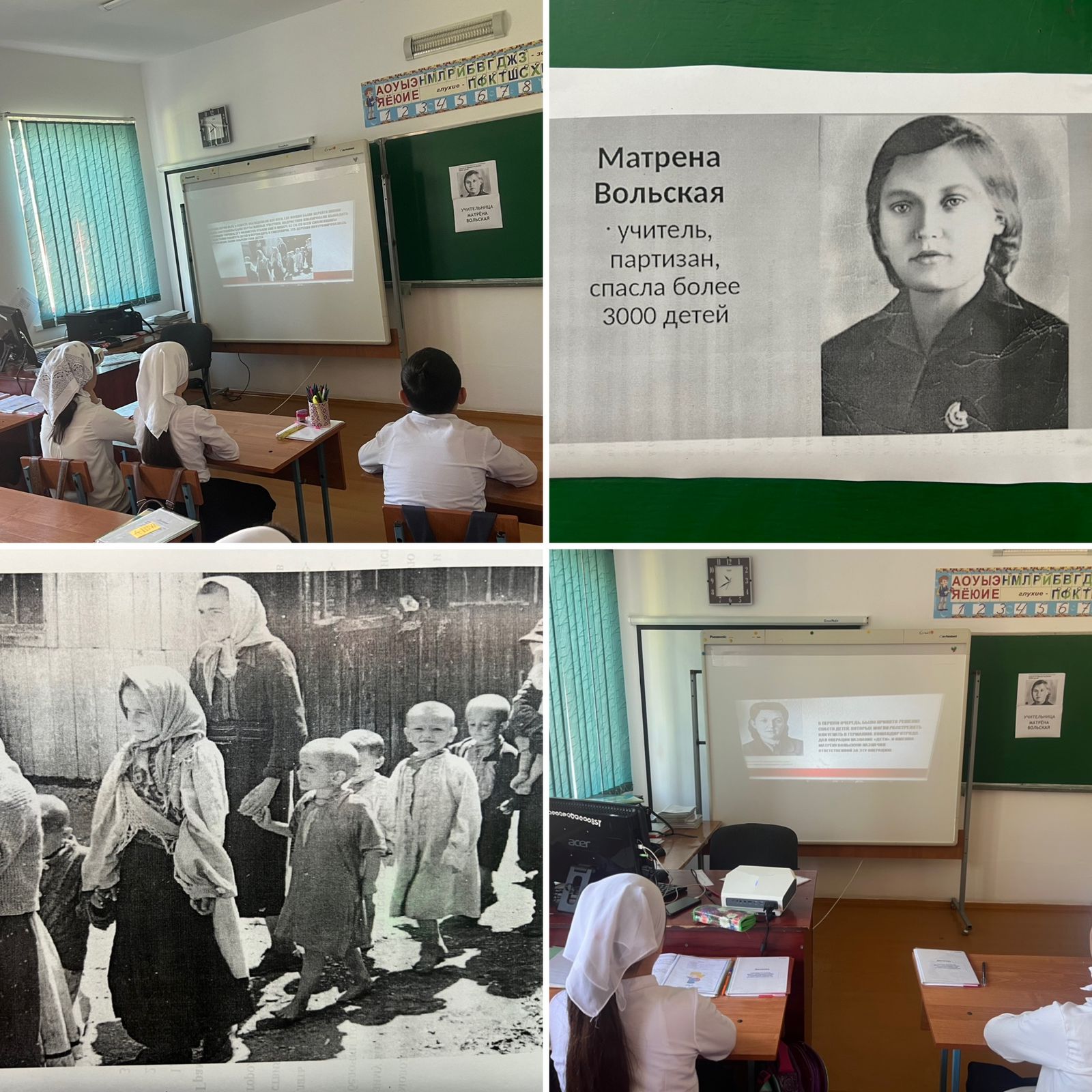 11.05.2023В рамках реализации Года педагога и наставника,в 4 «А» классе проведен классный час «Учителя в годы войны.Подвиг советской учительницы Матрёны Исаевны Вольской в годы Великой Отечественной войны».Классный руководитель Хункарханова Милана Сулеймановна.#ГодПедагогаНаставника