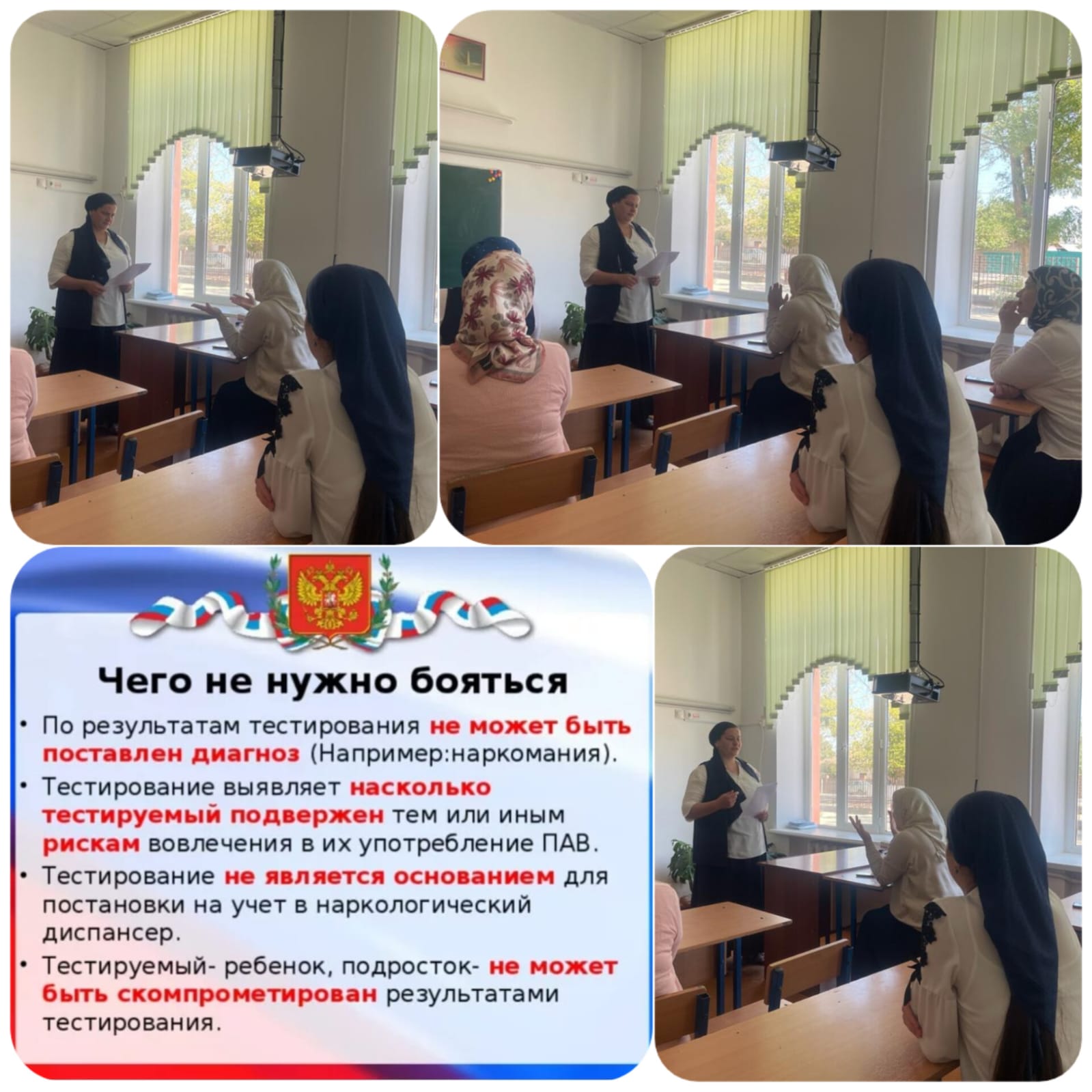 20.09.2023Социальный педагог Хутаева Макка Арбиевна провела беседу с классными руководителями 7-11-х классов по теме "Чего не нужно бояться в СПТ", для того чтобы классные руководители объяснили учащимися и родителям, почему проводится СПТ.