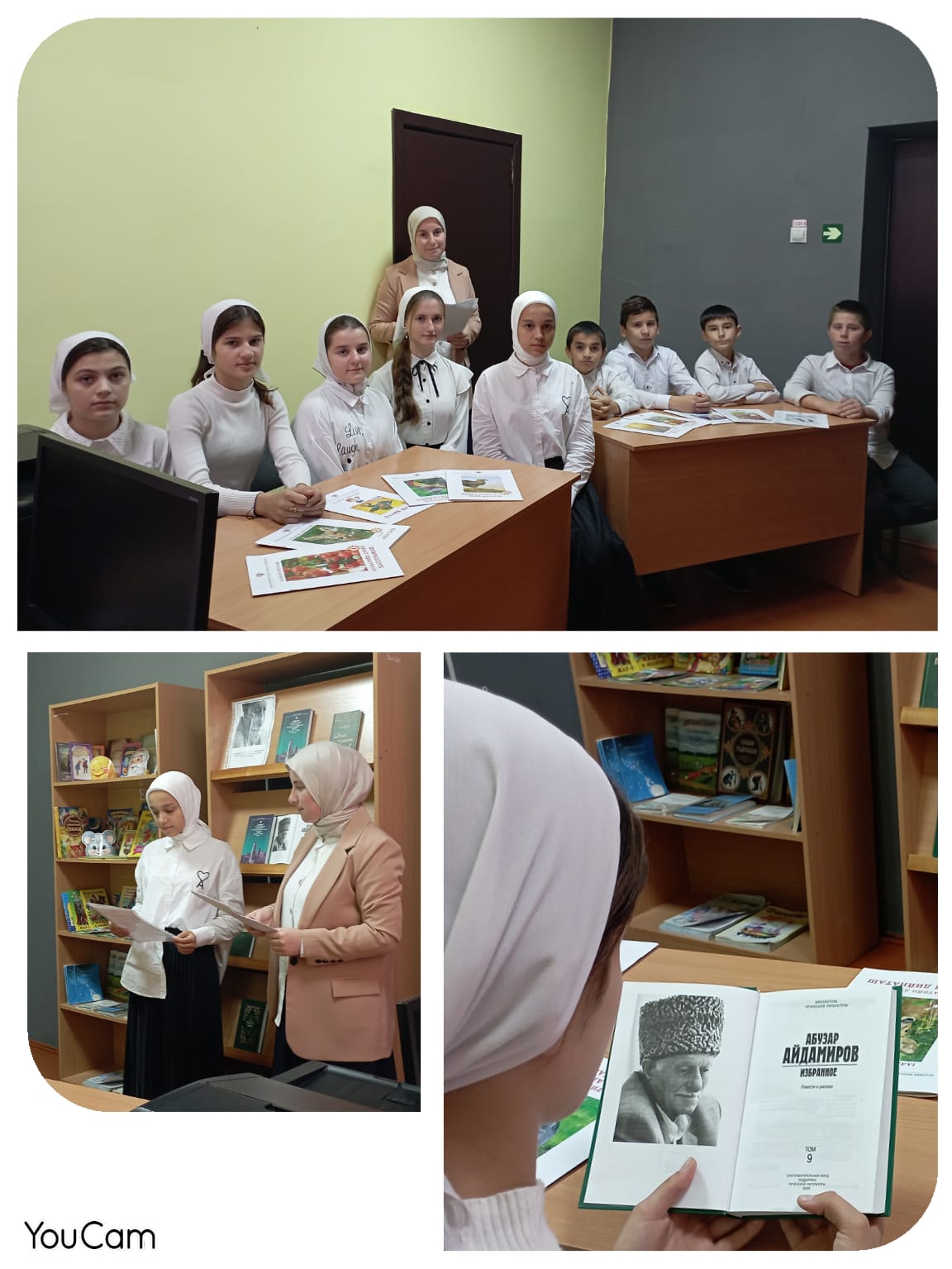 В нашей школе библиотекарем Эдаевой Иман Абдулвахидовной была проведена беседа на тему: "29 октября 2023 года - 90 лет со дня рождения писателя, поэта, общественного деятеля Абузара Абдулхакимовича Айдамирова".Абузар Айдамиров — советский и чеченский писатель и поэт, прижизненный классик чеченской литературы, народный писатель Чечено-Ингушской АССР, председатель Союза писателей Чечни. Не только произведения, но и всей своей жизнью Абузар Айдамиров показал неразрывную связь с народом. В рамках мероприятия была подготовлена книжная выставка «Абузар Айдамиров». На ней были представлены произведения самого писателя и литература, посвященная Абузару Айдамирову.