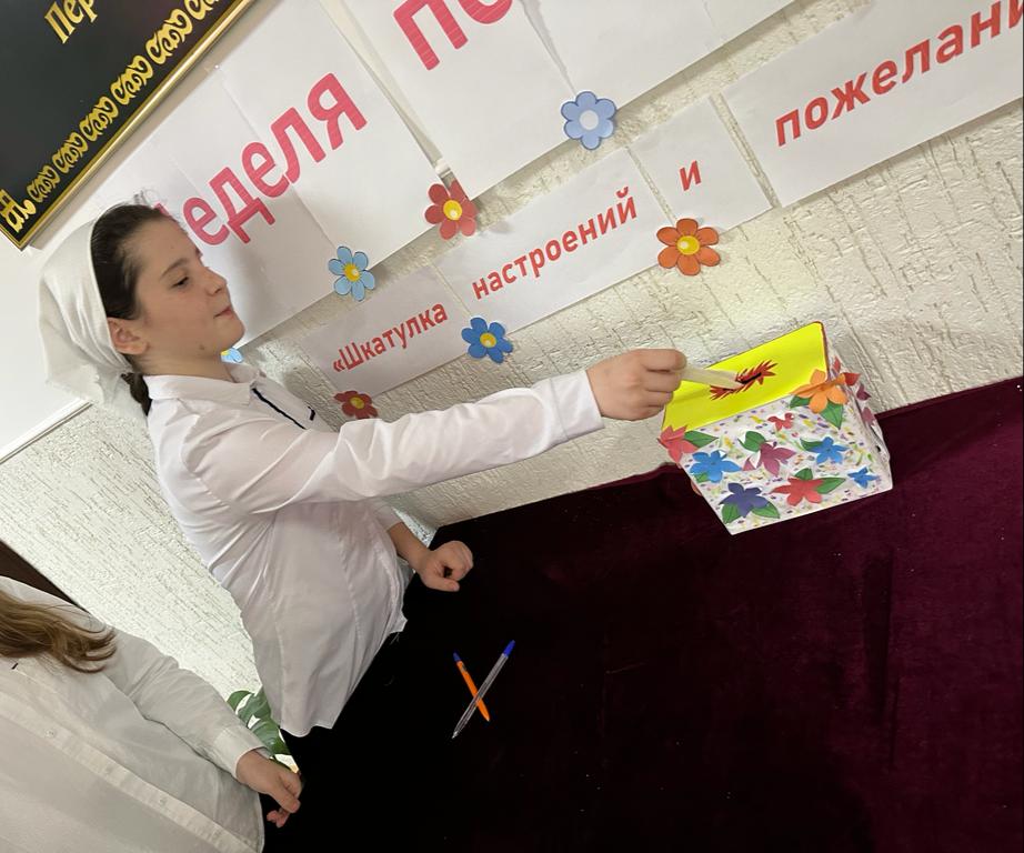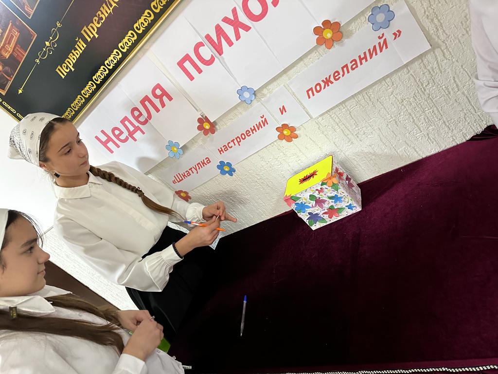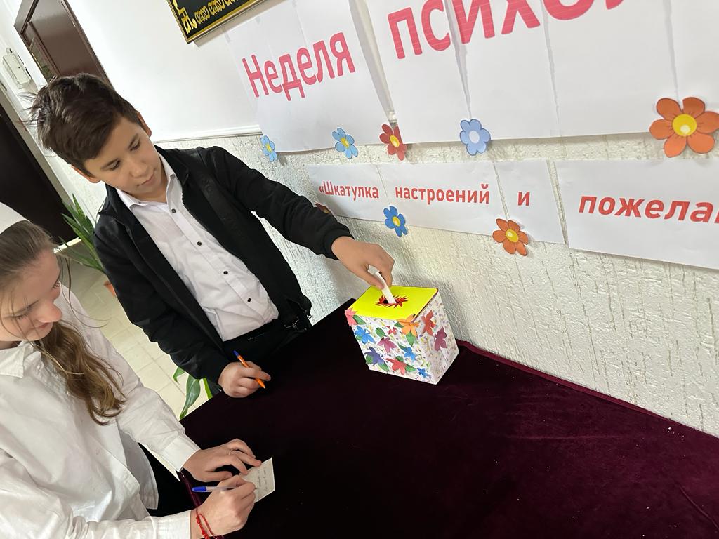 23.11.2023С 20.11. по 21.11. 2023 г. педагогом-психологом МБОУ "Дубовская СОШ" Саиевой Л.М., в рамках Недели психологии проведены акция "Шкатулка настроения и пожеланий", фотоконкурс «Я самый счастливый», «Жизнь- это счастье» среди учащихся 1-11-х классов.Цель: расширение знаний учащихся об эмоциях человека, обучение навыкам выражения собственных эмоций и чтения их у других людей.