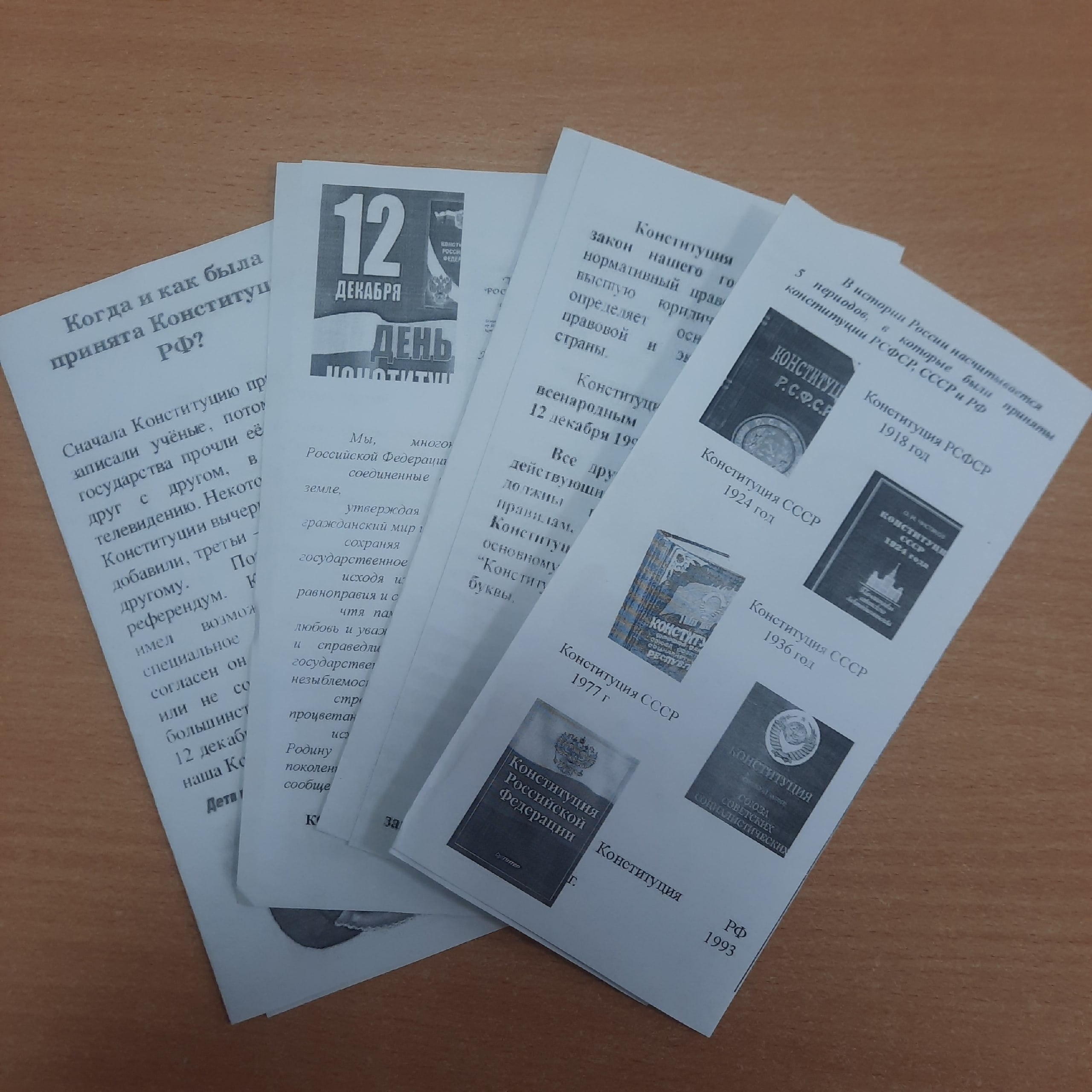 12 декабря социальный педагог Хутаева Макка Арбиевна оформила информационный стенд "День Конституции Российской Федерации " и провела акцию с раздачей буклетов "12 декабря День Конституции Российской Федерации ".