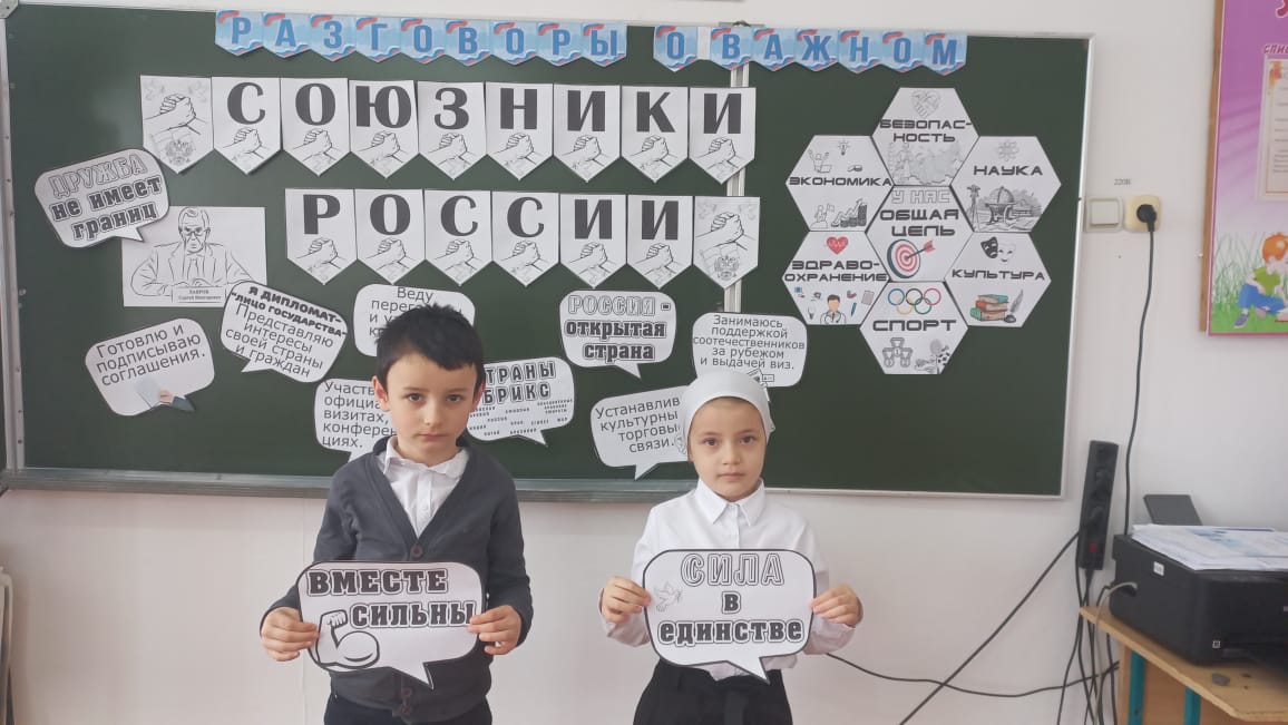 29.01.2024Разговоры о важном . Внеурочное занятие по теме "Союзники России" в 1 б классе. Цель занятия: познакомить с понятиями союзник, дипломат, подвести обучающихся к пониманию того, что союзники России, – это страны и люди, с которыми у нас общие ценности, цели и мировоззрение; познакомить младших школьников с различными примерами совместной деятельности России и стран-союзников; воспитывать чувство любви и уважения к своей Отчизне. Кл.рук. Панюшкина С.В.