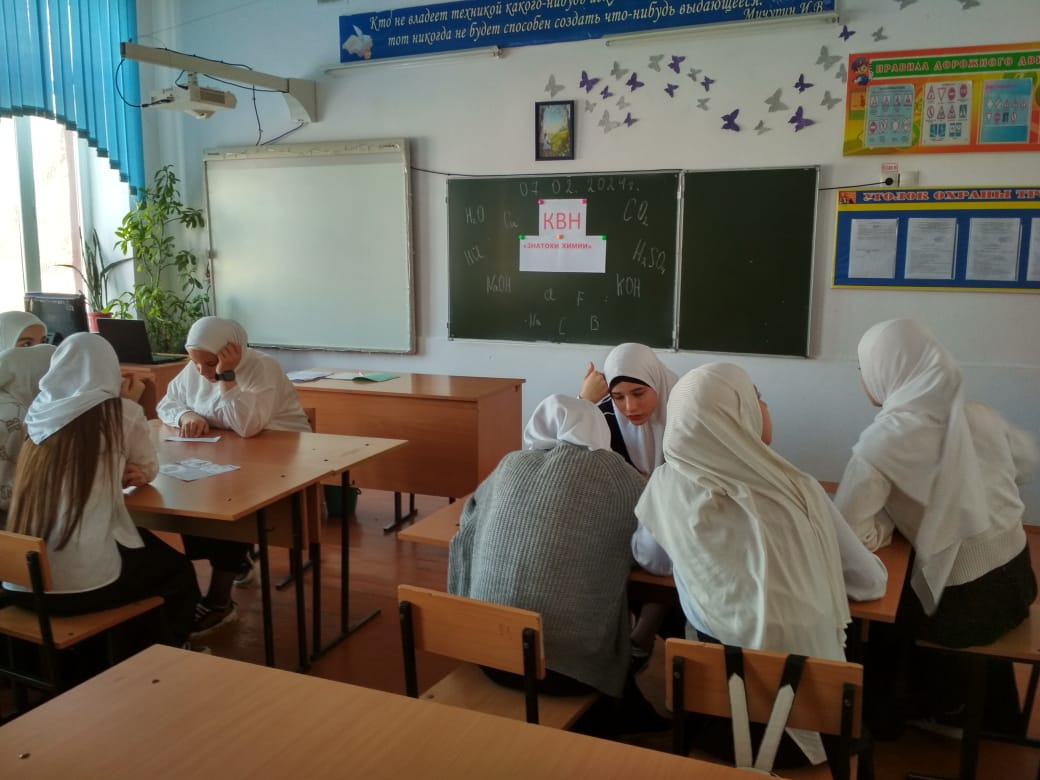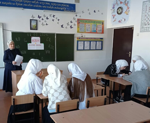 07.02.2024 г. в рамках недели биологии и химии учителем Булуевой З.М. проведен КВН «Знатоки химии» в 9-х классах.