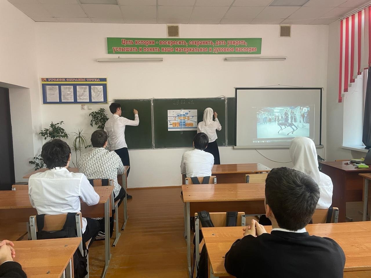 Профминимум "Россия-мои горизонты". Занятие «Россия-страна цифровых технологий: узнаю о профессиях и достижениях в сфере ЦТ и ИИ» в 8а классе. После просмотра и обсуждения видеоролика ""Россия-мое будущее" учащимся была предложена игра "Будущее и реальность". Кл.рук.Мусанипова С.Д