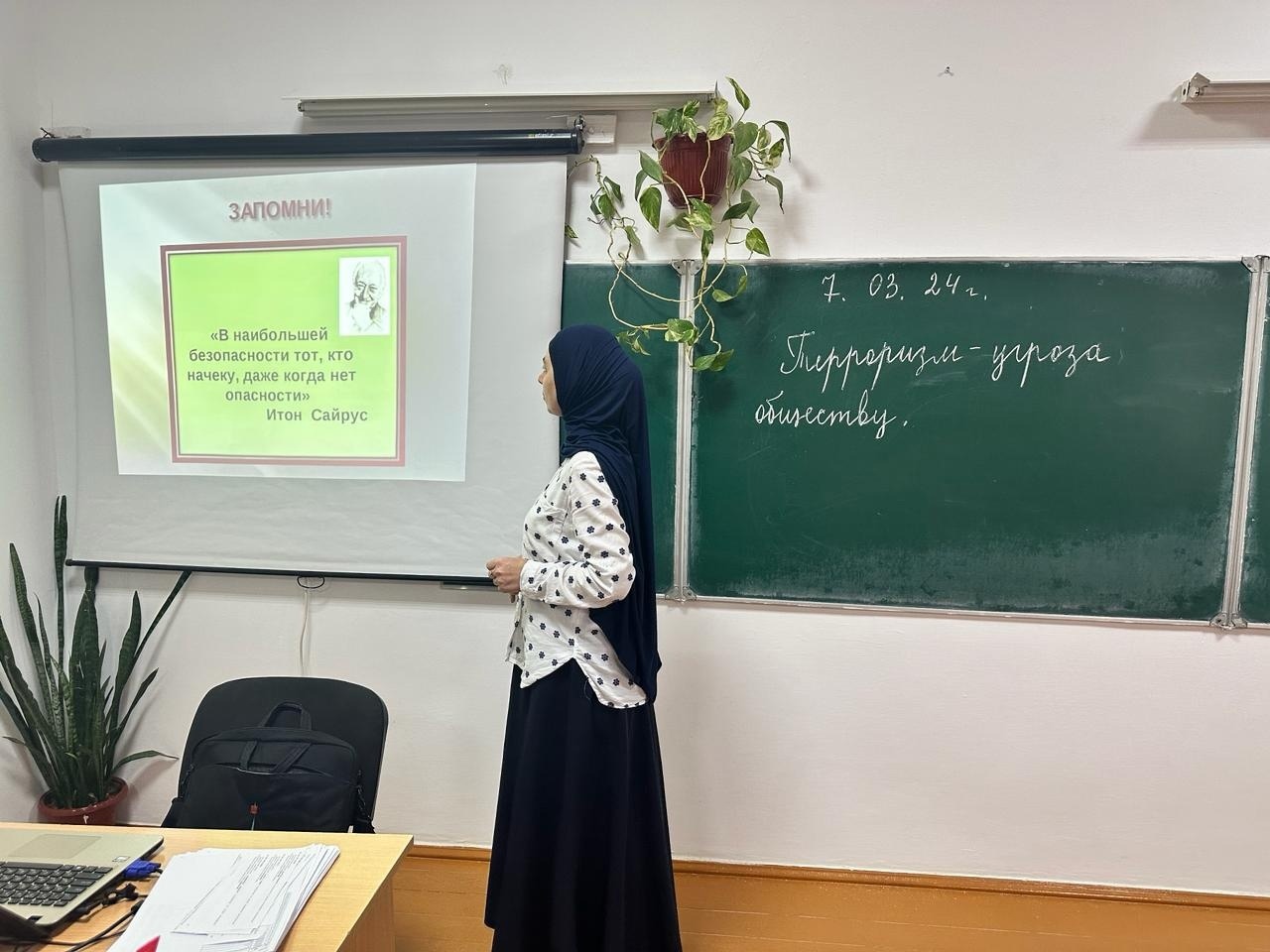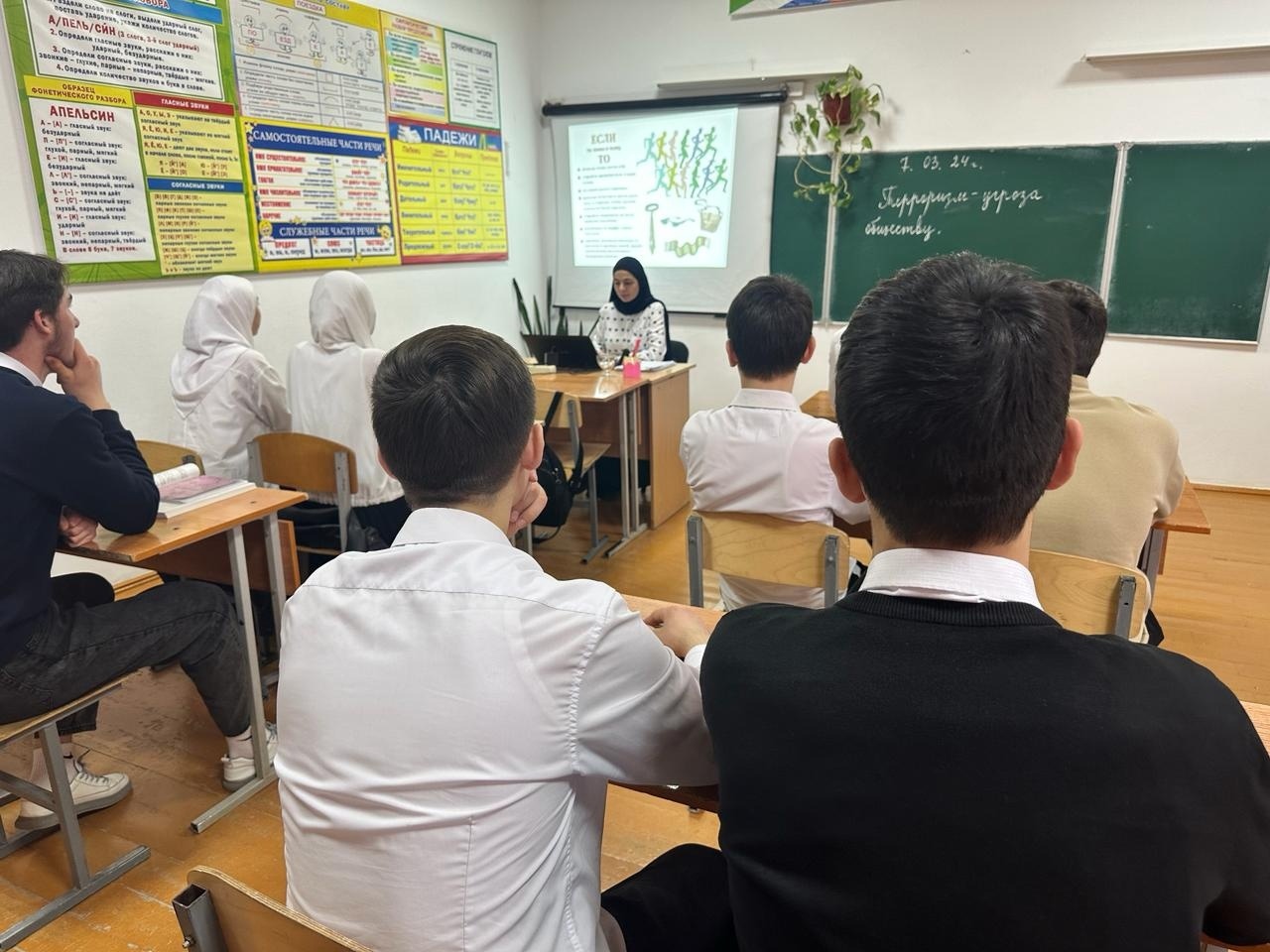 07.03.2024Классный час в 10-11 классах "Терроризм-угроза обществу ". Цель : предупреждение и пресечение распространения среди обучающихся экстремистских и иных радикальных взглядов, в том числе идей неонацизма, национализма и ксенофобии, попыток вовлечения их в деструктивную деятельность, прежде всего в несогласованные протестные публичные мероприятия . Кл.рук.Товсултанова Э.С.