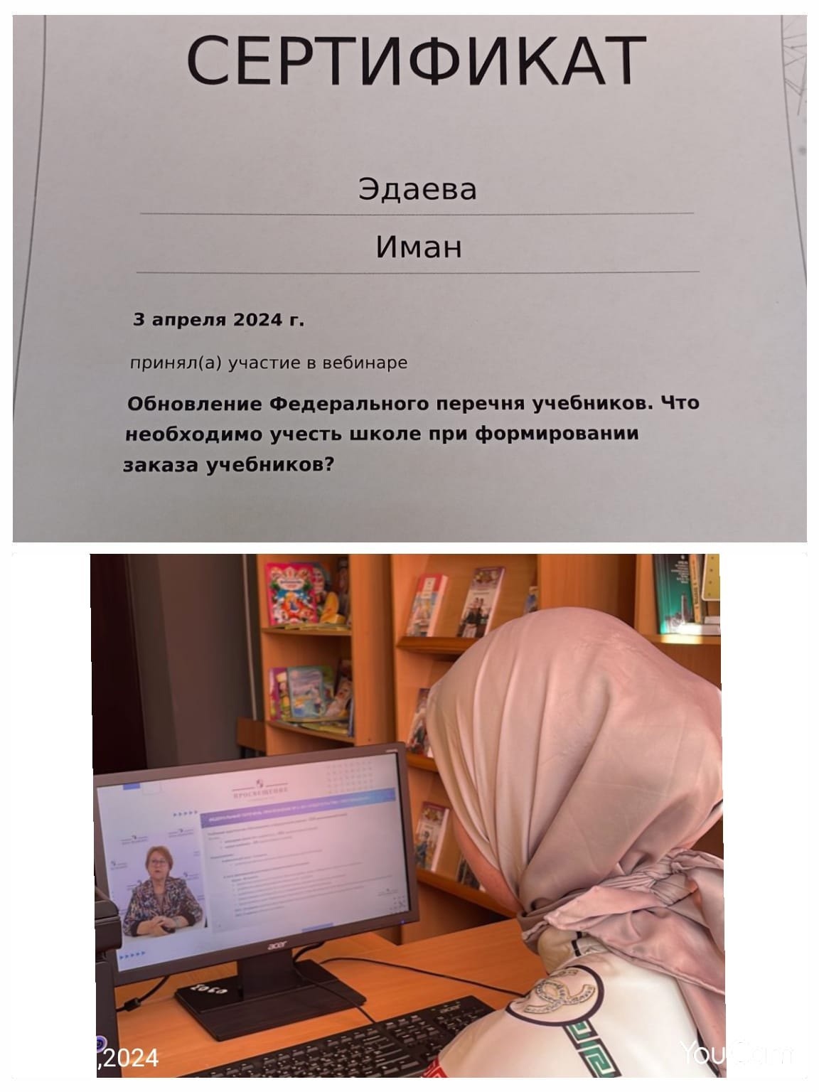 03.04.2024 года библиотекарь нашей школы Эдаева Иман Абдулвахидовна принимала участие в вебинаре