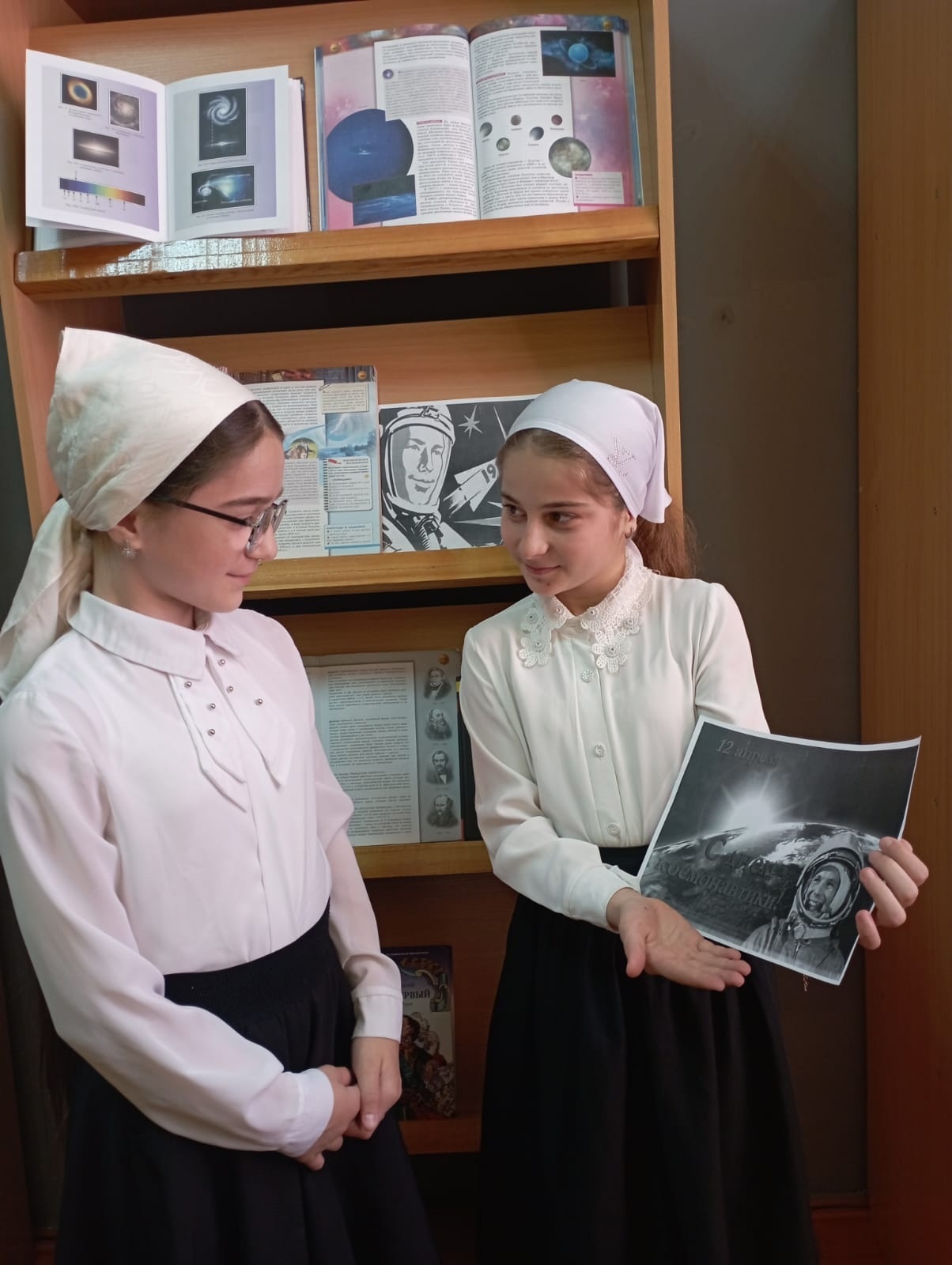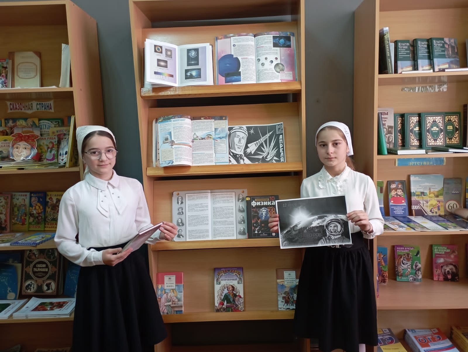 В рамках празднования Дня космонавтики библиотекарем нашей школы Эдаевой Иман Абдулвахидовной былаоформлена книжная выставка: «Выйди в открытый космос...».