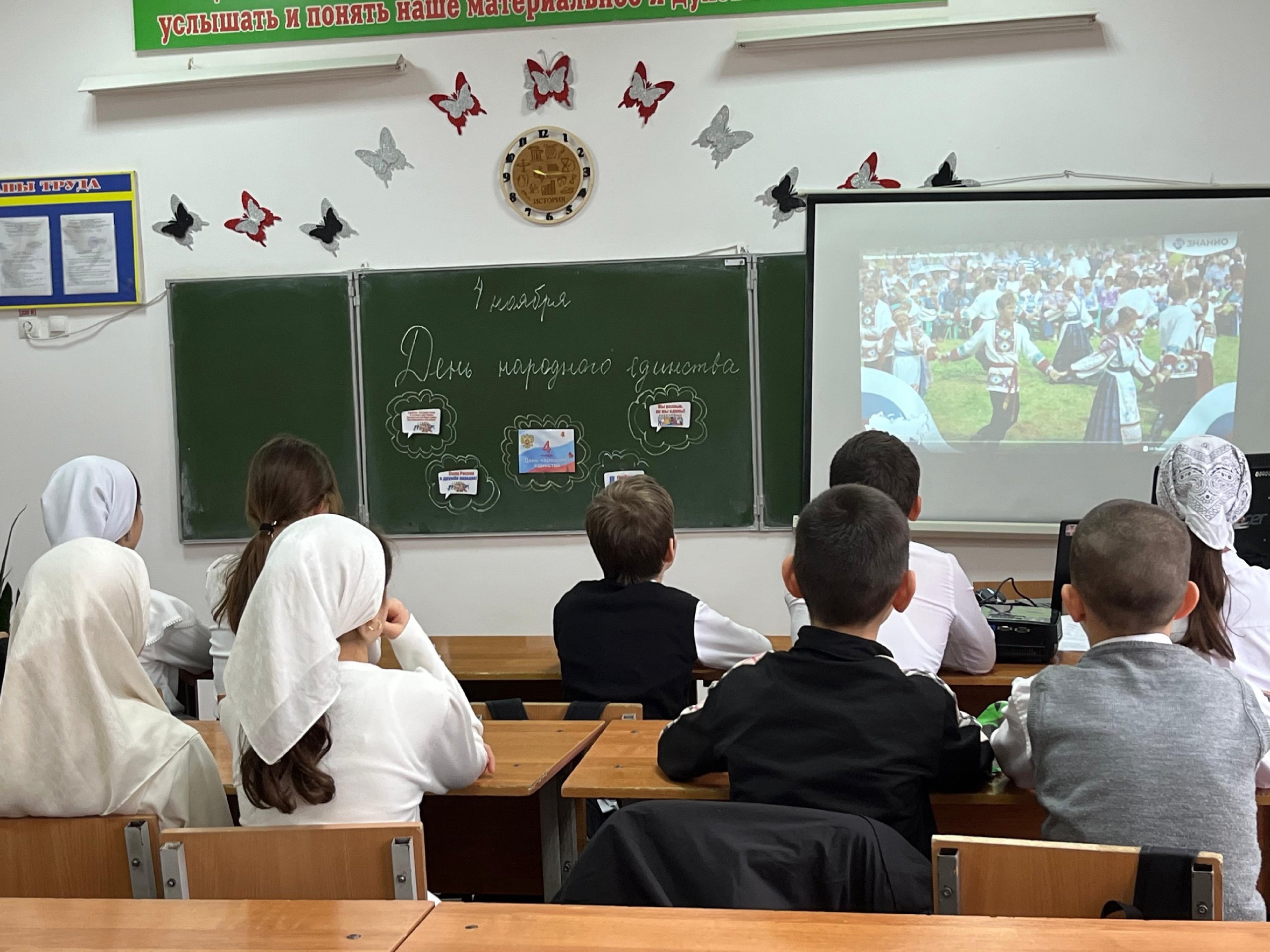 06.11.2024В 5 в классе классный руководитель Абдулаева М. С. провела классный час на тему « День народного единства», с целью развития у учащихся патриотического чувства и любви к родине.Этот праздник отмечается на государственном уровне. Он связан с событиями 1612 года, подвигом наших предков, которые сплотились во имя свободы и независимости родины.Наша родина могучая, бескрайняя, гостеприимная, протягивает руку дружбы и раскрывает объятия всем народам, кто желает жить мирно. Учащиеся с интересом смотрели презентацию и активно отвечали на вопросы учителя, с интересом рассказывали о семейных традициях своей семьи.