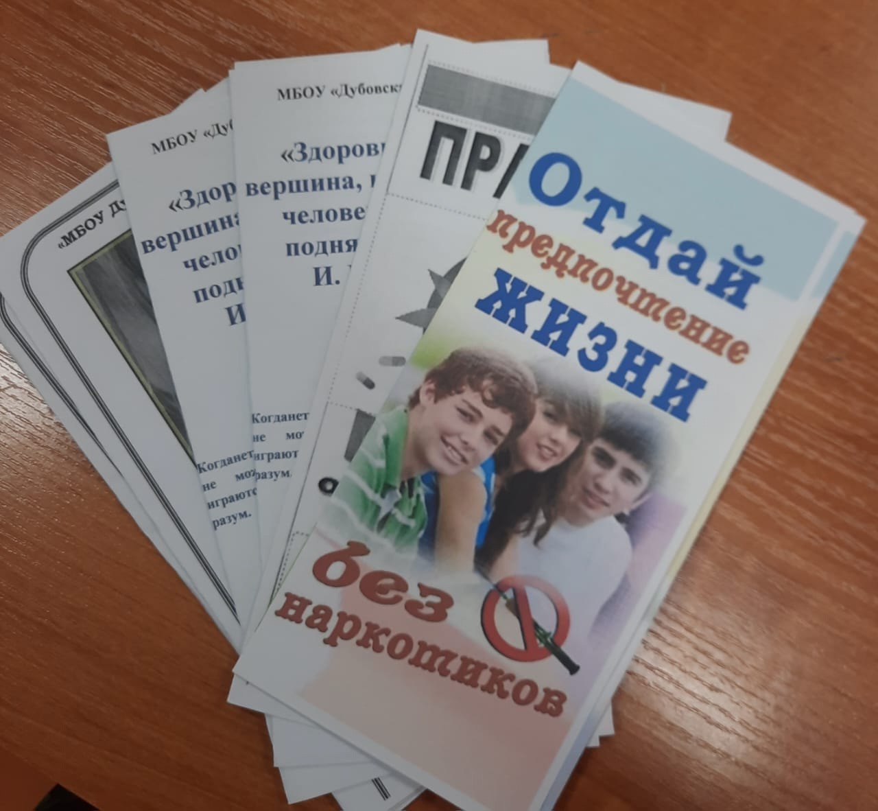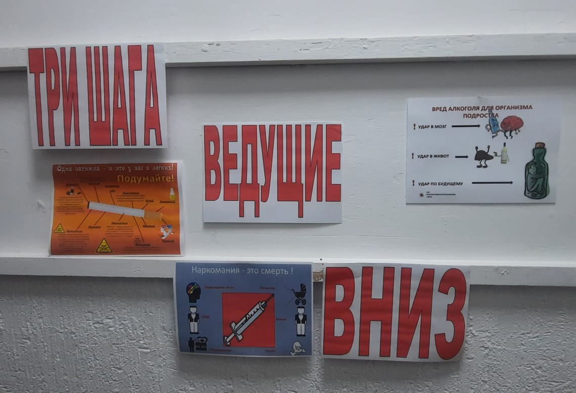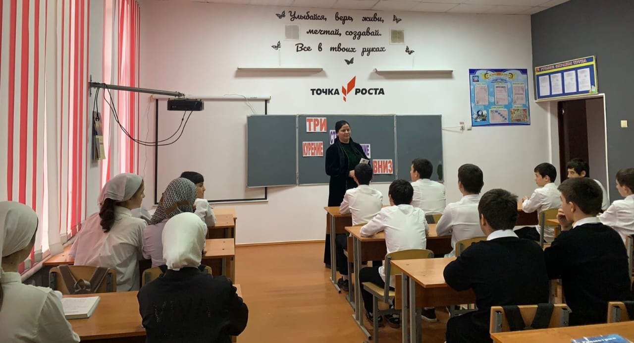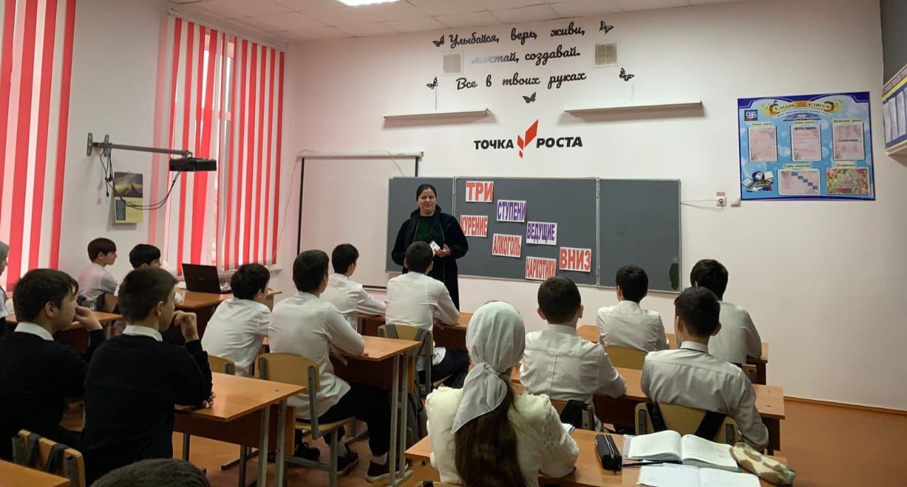 Социальный педагог Хутаева Макка Арбиевна оформила информационный стенд "Три шага ведущие вниз ", провела акцию с раздачей буклетов "Отдай предпочтение жизни без наркотиков " и провела беседу с учащимися 7-8-х классов по профилактике наркомании и таксикомании.