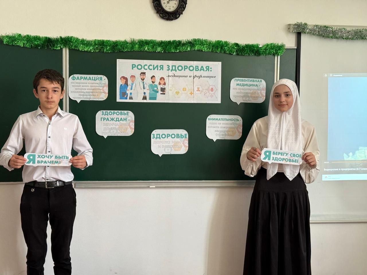 20.12.2024Россия- мои горизонты.Сегодня учащиеся 6-11 классов совершили важное путешествие в мир здоровья, узнали,что медицина и фармаци́я — основа сильной и здоровой России, ведь именно они помогают каждому из нас справляться с болезнями, восстанавливать силы и сохранять жизненную энергию. Классные руководители показали профориентационные видеоролики, в конце занятий учащиеся сыграли в игру.Зам. директора по ВР З. М. Булуева.
