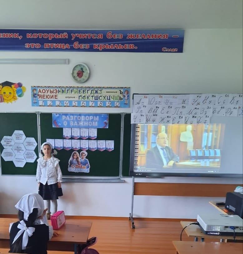 20.01.2025Разговоры о важном. Сегодня, 20 января в 1-11 классах прошли занятия по теме «День студента».Цель : формирование у учащихся представлений о студенчестве, как о важном этапе взросления и необходимости получения образования.В 1-2 классах классные руководители рассказали учащимся , кого называют студентами, где они учатся и чем отличаются от школьников.В 3-4 классах занятия дополнили рассказы о студентах блокадного Ленинграда, которые продолжали учиться, несмотря на бомбардировки, совмещая учебу с работой на оборонительных рубежах и заводах города.В 5-7 классах школьники узнали, как в нашей стране устроено профессиональное образование и куда можно пойти учиться.В 8-9 классах классные руководители организовали интерактивную викторину «Студенты и студенчество». Учащиеся отвечали на вопросы викторины, посвященной Дню российского студенчества.В 10–11-х классах выбору профессии уделили больше внимания. Кроме того, обсудили личностные качества, необходимые для успешного получения высшего или среднего специального образования. Ученики, которые определились с выбором, рассказали, куда они планируют поступать и почему выбрали именно это направление.Зам. директора по ВР З М. Булуева.