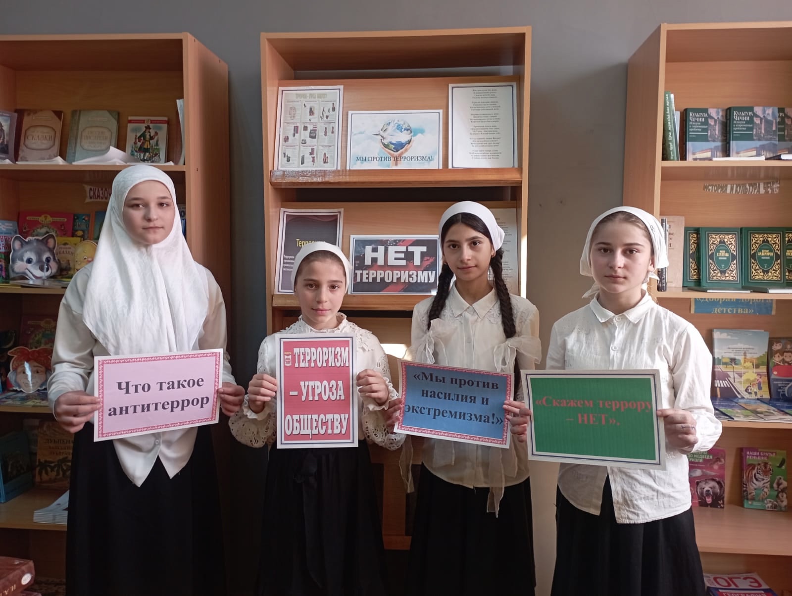 17.03.2025Библиотекарем нашей школы Эдаевой Иман Абдулвахидовной была организована книжно-иллюстративная выставка на тему: "Терроризму - нет!".Цель: объяснить обучающимся сущность терроризма, его цели; совершенствование знаний о терроризме; основ безопасности в чрезвычайных ситуациях; закрепить правила поведения в случае захвата в заложники.