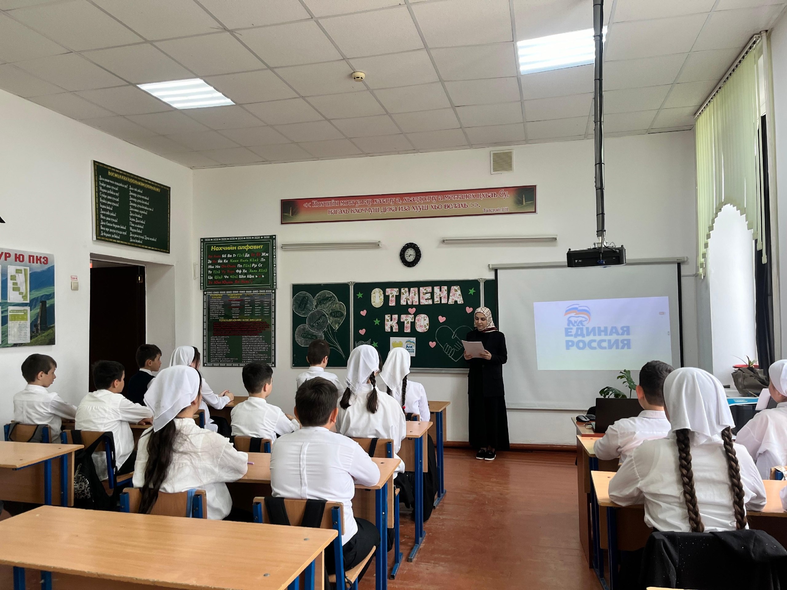 11.04.202510 апреля 2025 года классный руководитель 5 "Б" класса Айтукаева М. С. провела классный час ,посвященный ко дню мира "Отмена КТО".Цель : рассказать историю Чеченской Республики,подчеркнуть роль главы Чеченской Республики Кадырова Рамзана Ахматовича в восстановлении разрушенных городов и сел; гражданско-патриотическое воспитание учащихся на примере патриотов страны.С учащимися проведена беседа как о самом режиме КТО, так и о значимости ее отмены, о подвиге первого президента ЧР А-Х .Кадырова.