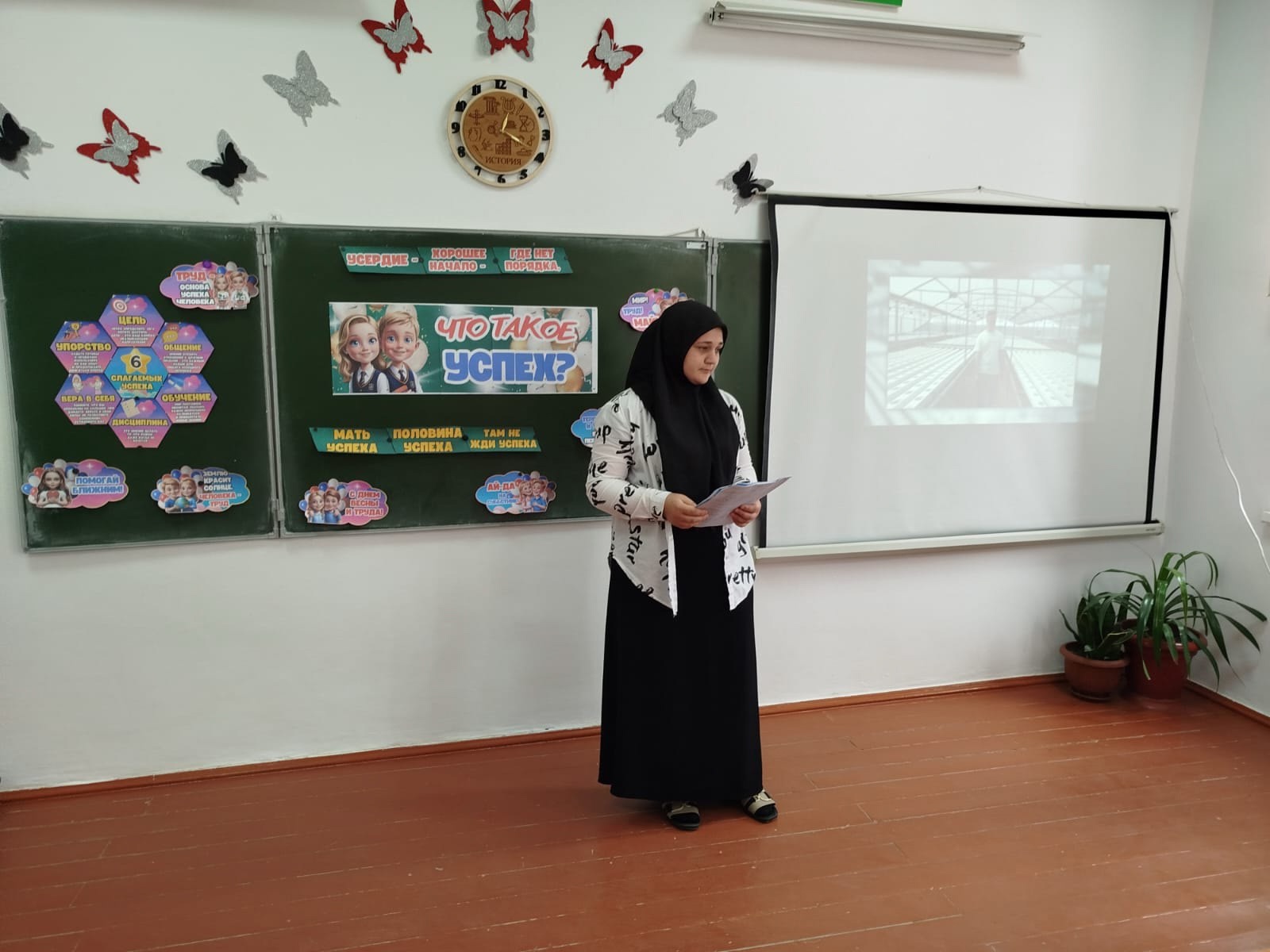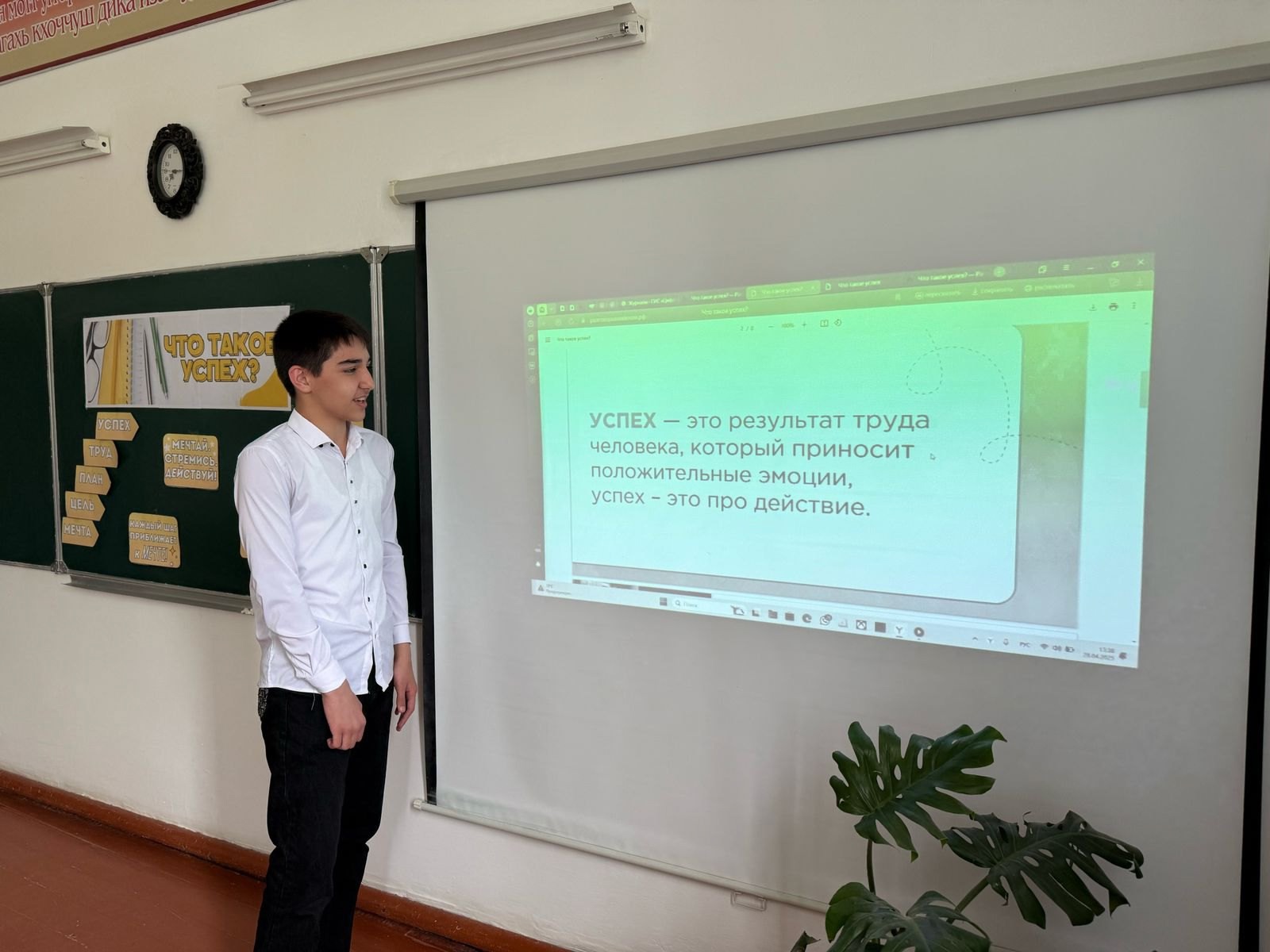 30.04.2025В рамках цикла «Разговоры о важном» в преддверии Праздника Весны и Труда, классные руководители 1-11 классов рассказали учащимся , что такое успех .Цель занятий: развитие представлений обучающихся о значении труда и успеха, ценности созидательного труда и важности раскрытия трудового потенциала каждого гражданина для успешности всего государства.В 7 а классе Сайгибат Абдулкаримовна рассказала ребятам о том, что успех – это результат труда человека, который может проявляться в самых разных масштабах, при этом его необходимо поддерживать путем постоянных усилий, личностного и профессионального развития.Зам. директора по ВР З. М. Булуева.