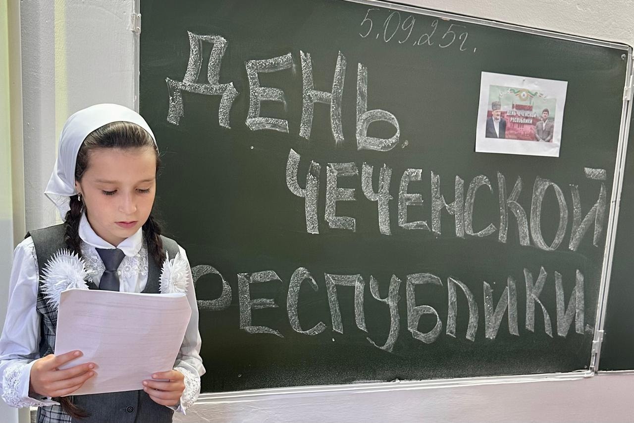 08.09.2025Классный час ко дню Чеченской Республики в 5 б классе.Цели: познакомить с историей празднования Дня Чеченской Республики; формирование навыка оценки политических событий и процессов в обществе, гражданской позиции; воспитание чувства патриотизма, уважительного отношения к истории Отечества.С 2002 года 6-го сентября жители Чеченской Республики отмечают День гражданского согласия, единения и примирения, который является из самых важных дней в праздничном календаре нашей республики, так как согласие и единство являются важнейшими факторами становления и эффективного развития гражданского общества. Этот день был учрежден первым Президентом Чеченской Республики, Героем России Ахмат-Хаджи Кадыровым. Классный руководитель 5 б класса Линда Вахамбиевна рассказала учащимся историю празднования Дня Чеченской Республики, об учредителе этой знаменательной даты- о Первом Президенте ЧР, Герое России А-Х. Кадырове, о его жизни и деятельности.