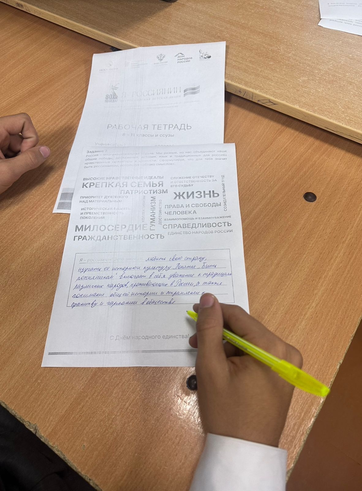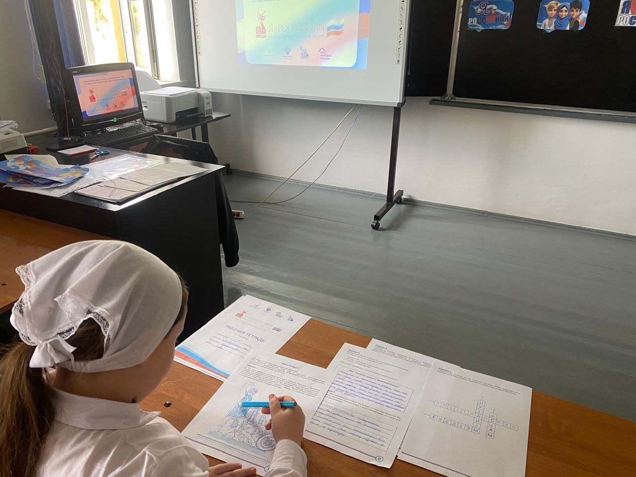 25.10.2025Учащиеся и педагоги нашей школы присоединились к Всероссийской акции "Я- россиянин". Всероссийскую детскую культурно-просветительскую акцию «Я – россиянин» запустили ко Дню народного единства и посвятили 80-летию Великой Победы. Она продлится до 15 ноября. Акция проходит в формате двух цифровых интерактивных уроков, доступных для всех регионов России. Они разделяются по возрастам (младшая и старшая школы) и содержат анимированную презентацию, рабочую тетрадь и виртуального учителя. Уроки посвящены многообразию культур народов, традиционным религиям России, истории, духовно-нравственным и семейным ценностях.Цель акции – формирование гражданской идентичности, воспитании уважения к представителям разных народов, проживающих на территории нашей страны и любви к Родине.Зам. директора по ВР З. М. Булуева