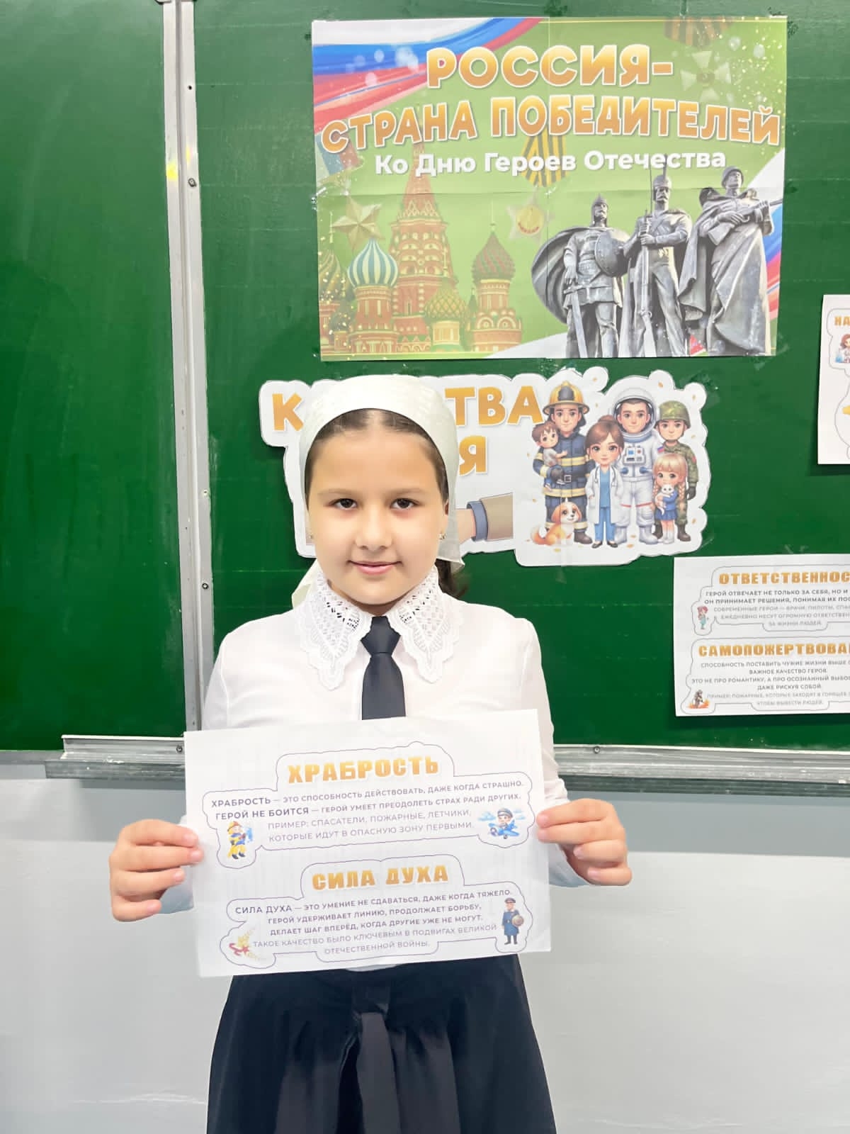 08.12.2025"Разговоры о важном».8 декабря в 1-11 классах нашей школы проведены внеурочные занятия «Россия — страна победителей», которые были посвящены предстоящему государственному празднику — Дню Героев Отечества, который отмечается 9 декабря.Цель занятий: формирование у обучающихся представлений о служении Родине, ответственности за судьбу страны, а также воспитание чувства гордости за соотечественников.День Героев Отечества — это общенациональный праздник. Учащиеся узнали, какими качествами должен обладать герой и как эти черты находят отражение в гражданской идентичности россиян, что за каждым подвигом стоит обычный человек со своими мечтами и сомнениями.Зам. директора по ВР З. М. Булуева