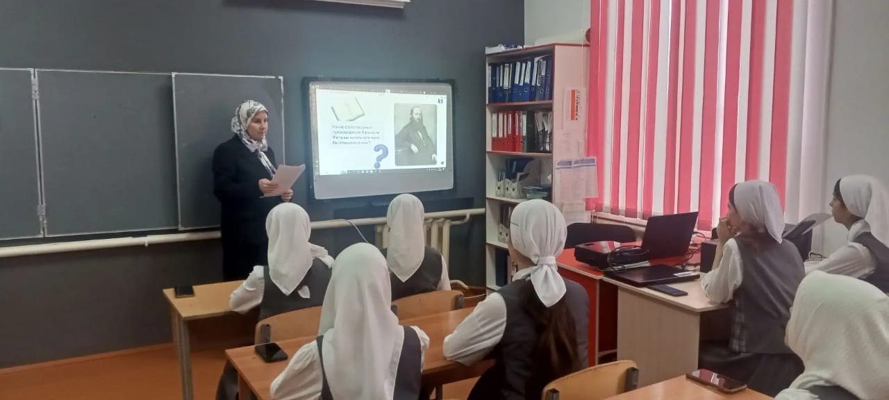 10.12.2025«В рамках программы «Чтецкие программы» под эгидой Российского общества «Знание» в нашей школе состоялось заседание литературного клуба. На занятии участники познакомились с творчеством А. А. Фета и проанализировали его стихотворение «Я пришёл к тебе с приветом». Стоит отметить, что мероприятие проводилось не в форме урока, а в виде игры, чем и вызвало большую заинтересованность участников. Надеемся, что подобные заседания клуба помогут учащимся нашей школы расширить знания и по-новому взглянуть на великие произведения русской литературы.Участники заседания литературного клуба:1. Библиотекарь (куратор) литературного клуба Эдаева Иман Абдулвахидовна;2. Учащиеся 5-6 классов.