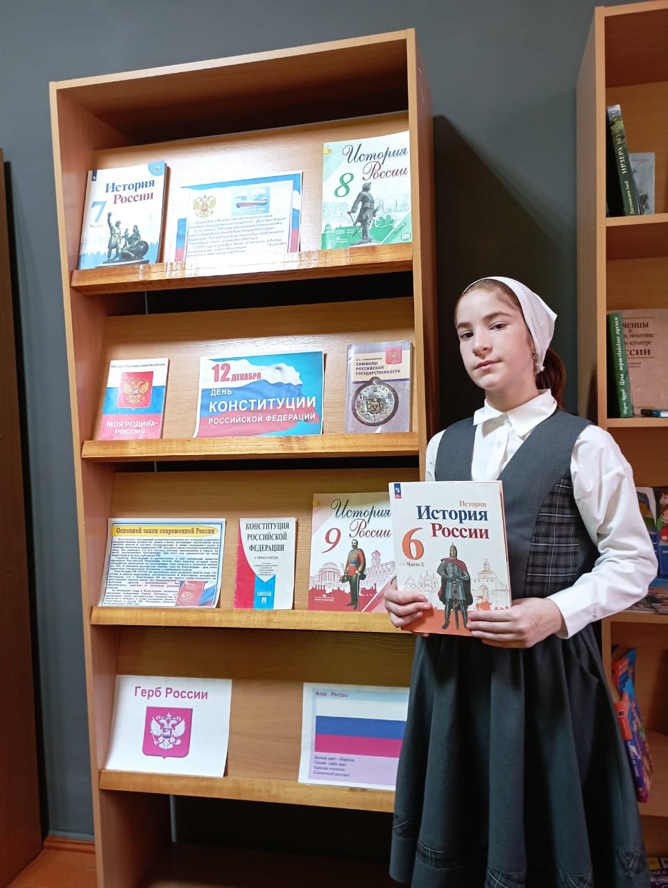 10.12.2025В нашей школе библиотекарем Эдаевой Иман Абдулвахидовнойбыла оформлена книжно-иллюстративная выставка на тему: «12 декабря - День Конституция РФ»Цели:формирование представления о важности соблюдения законов государства;развитие гражданско-правового образования учащихся;формирование активной гражданской позиции и правового сознания;приобретение навыков правовой культуры;развитие гражданской инициативы и гражданской ответственности,развитие умения работать в группе, выслушивать мнение других и излагать свои мысли.