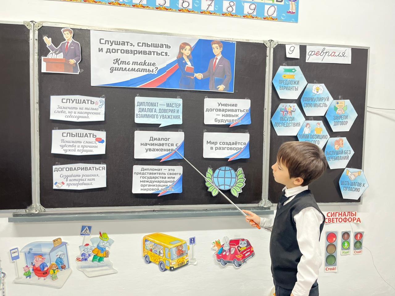 09.02.2026Десятого февраля наша страна отмечает профессиональный праздник – День дипломатического работника, который был установлен в 2002 году в честь 200-летнего юбилея Министерства иностранных дел России.9 февраля занятия «Разговоры о важном» были посвящены теме «Слушать, слышать и договариваться. Кто такие дипломаты?» Педагоги рассказали учащимся , почему умение договариваться важно не только в международных отношениях, но и в обычной жизни: в школе, семье, в трудовом коллективе. Вместе обсудили, чем отличается просто «слушать» от умения по-настоящему слышать другого человека и находить решения, которые учитывают разные точки зрения.Ведь в жизни каждого человека бывают ситуации, когда нужно решать сложные вопросы. Иногда такие вопросы касаются дружбы, учебы, семьи, а иногда – целых стран. И в таких ситуациях важно уметь разговаривать друг с другом спокойно и уважительно.Зам. директора по ВР З. М. Булуева