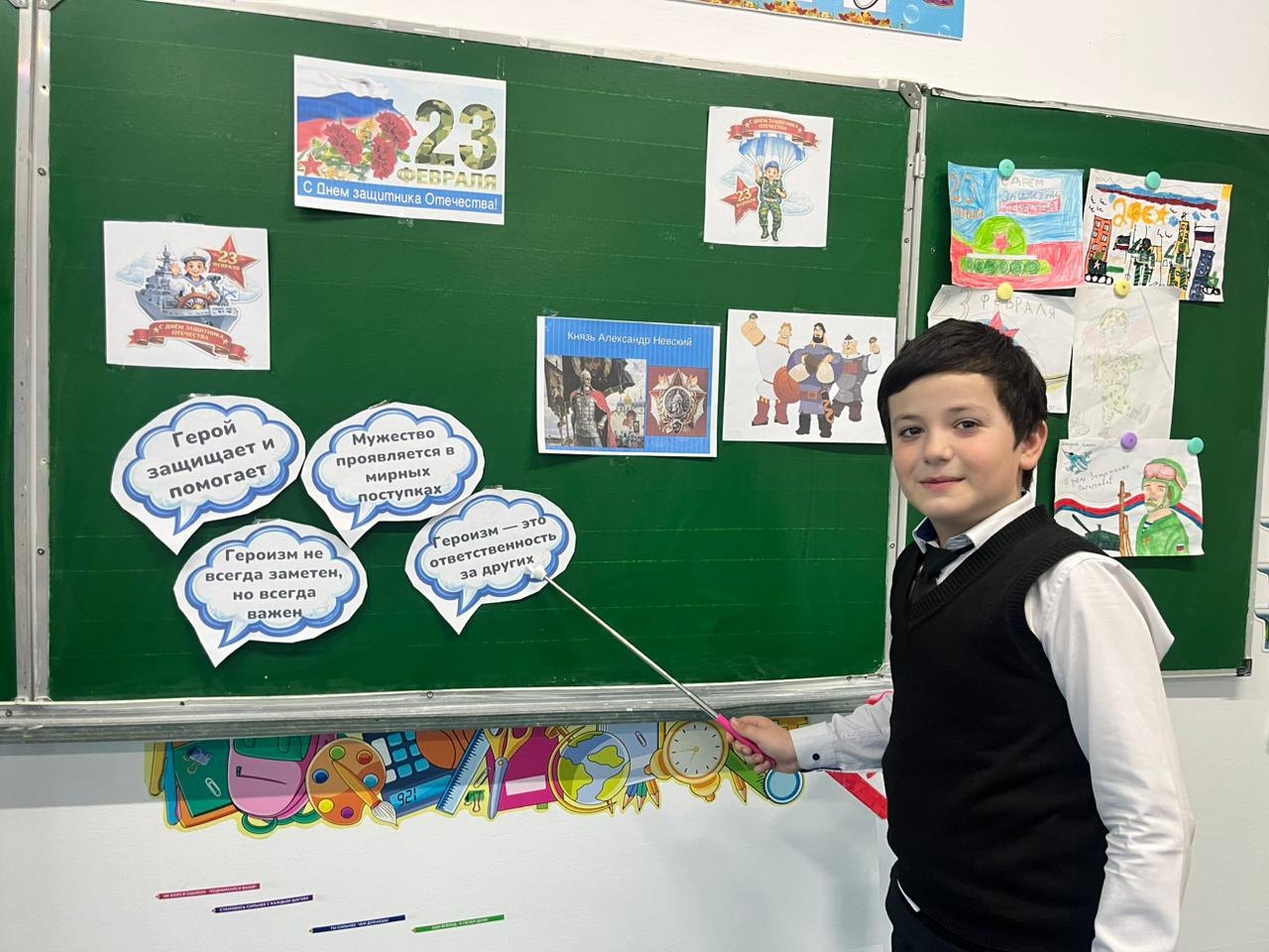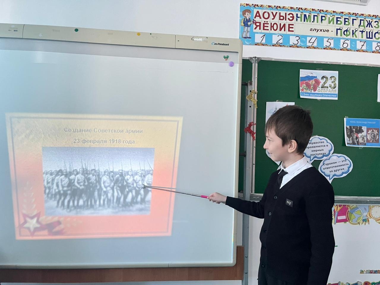 20.02.2026Классный час, посвящённый 23 февраля , Дню защитника Отечества в 3 «А» классе прошел торжественно и патриотично, воспитывая у детей уважение к защитникам Родины.Классный руководитель Ханбиева Р. Ш. познакомила учащихся с историей праздника (День воинской славы России), разъяснила понятия «защитник», «патриотизм», «честь».Ученики узнали историю праздника, говорили о мужестве, героизме и защите Отечества.Мероприятие помогло сформировать у третьеклассников представление о долге и любви к своей стране.Зам. директора по ВР Булуева З. М.