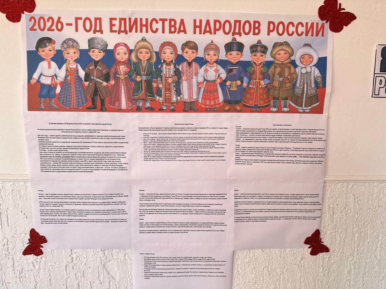 28.04.2026Активисты "Движения первых" МБОУ "Дубовская СОШ" подготовили информационный стенд, который расскажет о малых и больших народах России. Приходите посмотреть, расширить горизонты и узнать больше о нашем многообразии!Узнайте о наших корнях, культуре и вкладе в единую историю страны. Давайте вместе исследовать наше многонациональное наследие!#ГодЕдинстваНародовРоссииЗам.директора по ВР З.М.Булуева.