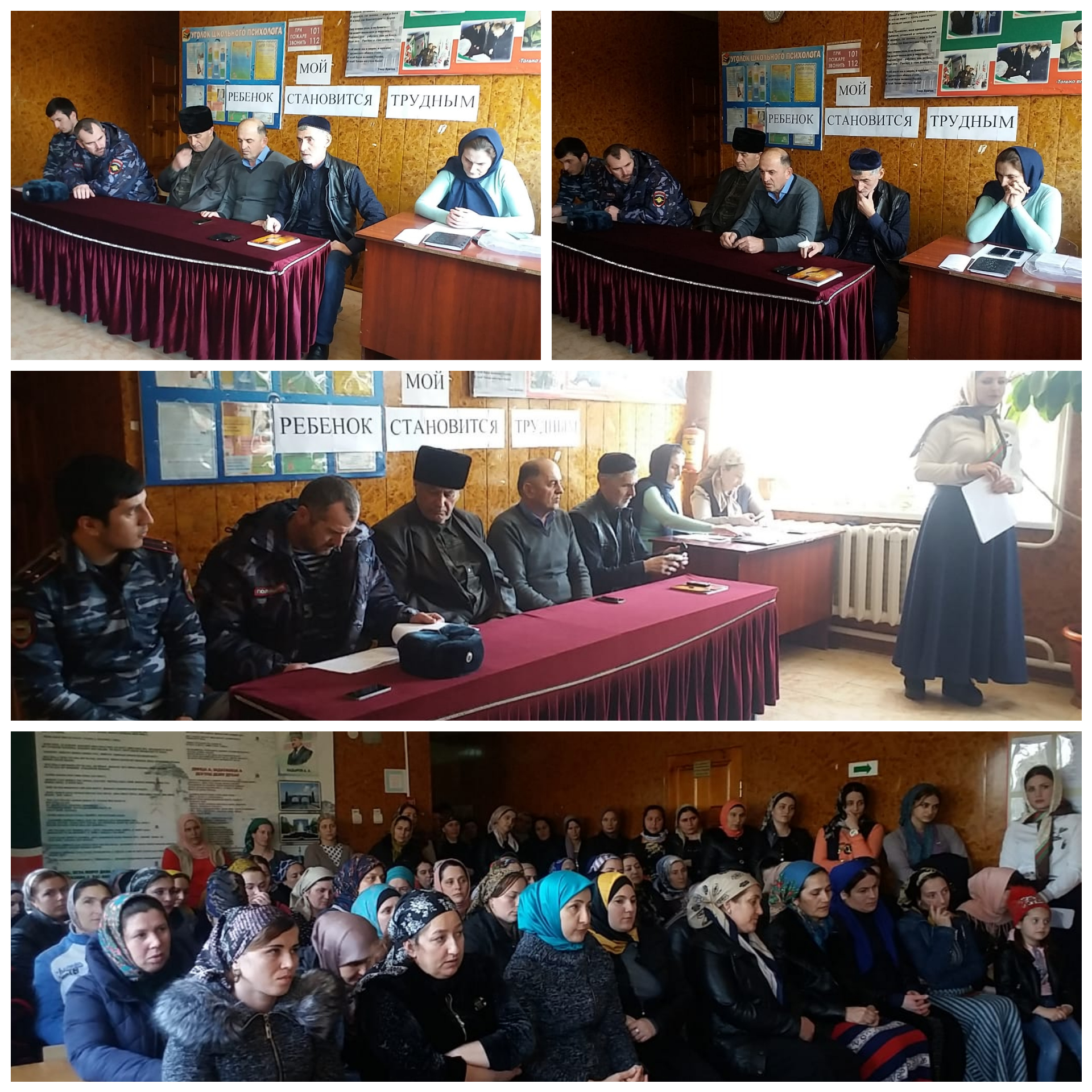12.02.201912 февраля в школе проведено общешкольное родительское собрание по теме "Мой ребенок становится трудным". Приглашенные гости: глава сельского поселения Мусанипов С.М; имам ст.Дубовская Дибиров С.С.; участковый инспектор Эскирханов Р.; инспектор ПДН Санбиев С.С.