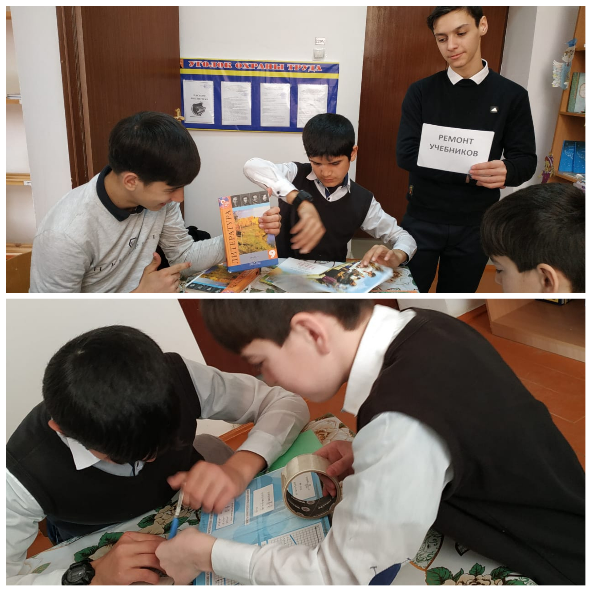 Ремонт книг и учебников в МБОУ Дубовская СОШ библиотекарь -Эдаева И.А. (06.03.19г.)